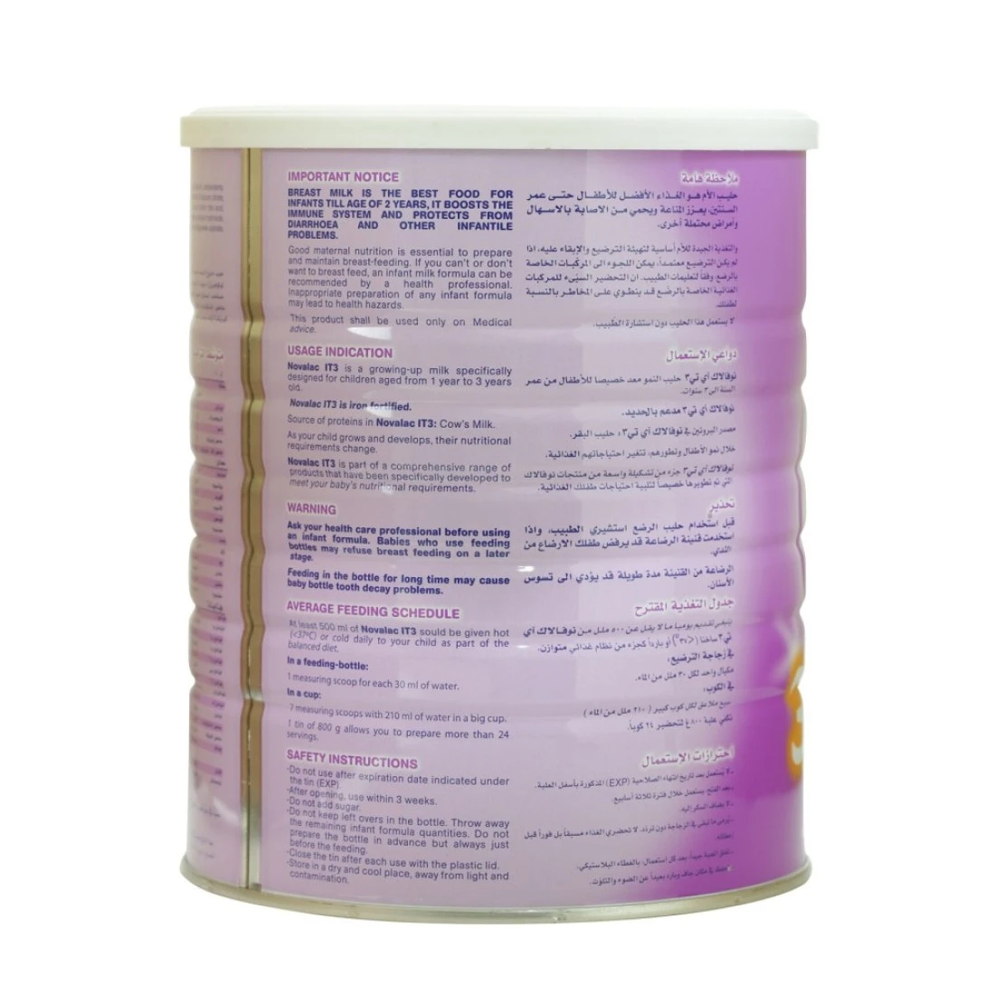 نوفالاك أي تي 3 مسحوق حليب أطفال بتركيبة لدعم النمو مضادة للإمساك من 1 إلى 3 سنوات 800 غرام