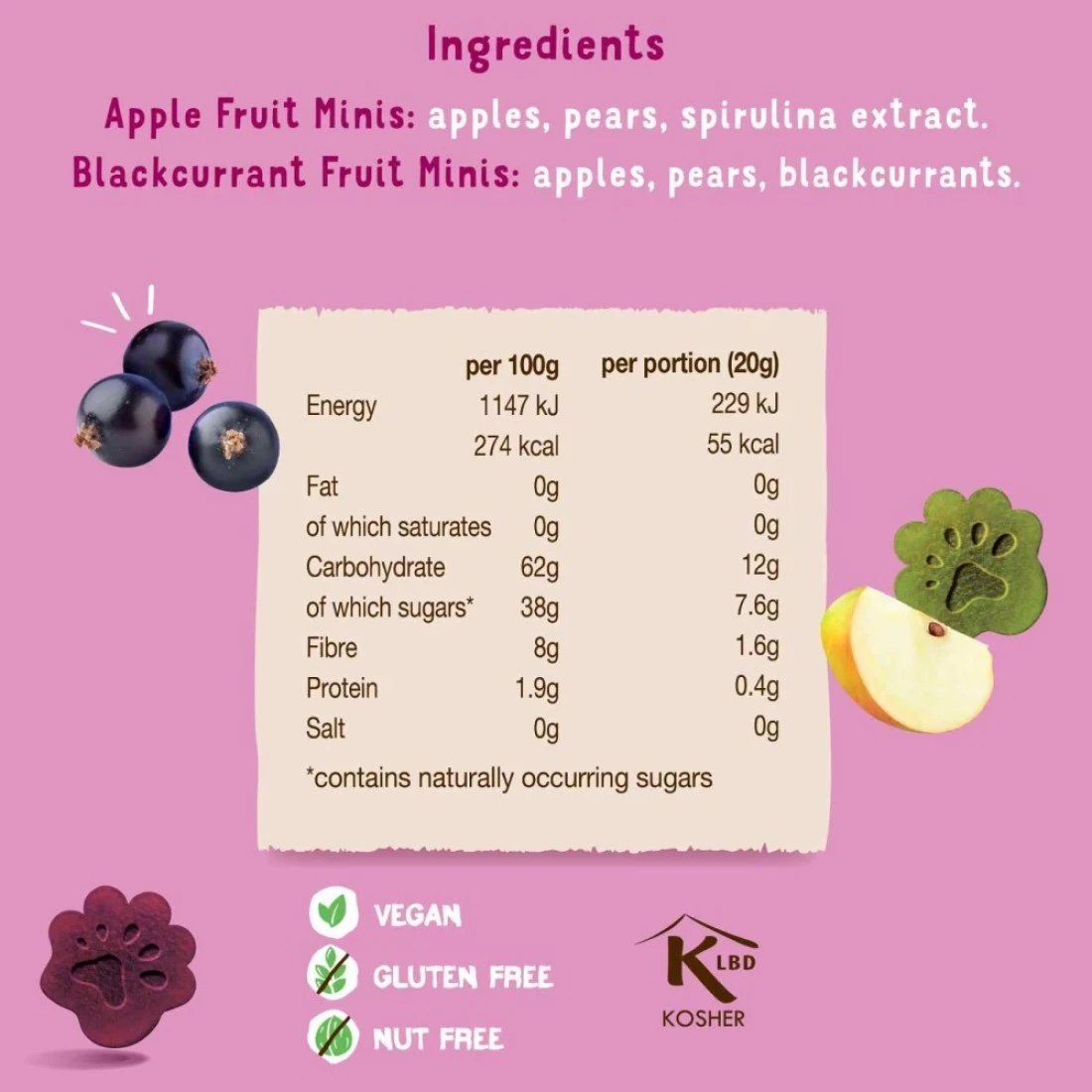 ingredients : تفاح، كمثرى، كشمش أسود، مستخلص سبيرولينا.