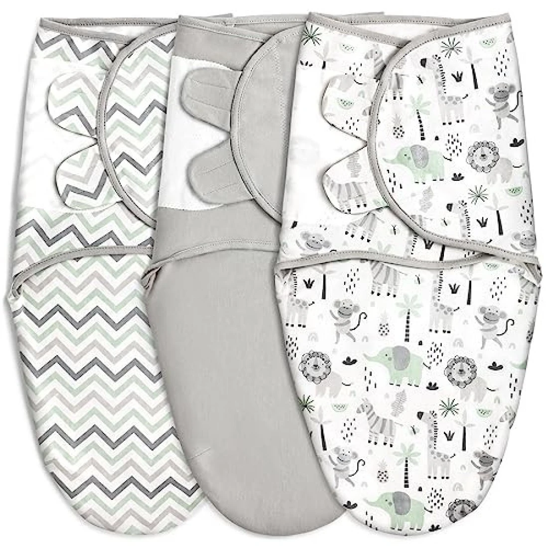 GLLQUEN BABY Organic Swaddle Sleep Sacks for Newborn - Baby Swaddles 0-3 Months, 3-Pack Newborn Swaddle Sack, Gray Stripe & Animal World, Baby Swaddle Blanket Wrap (Small/Medium)