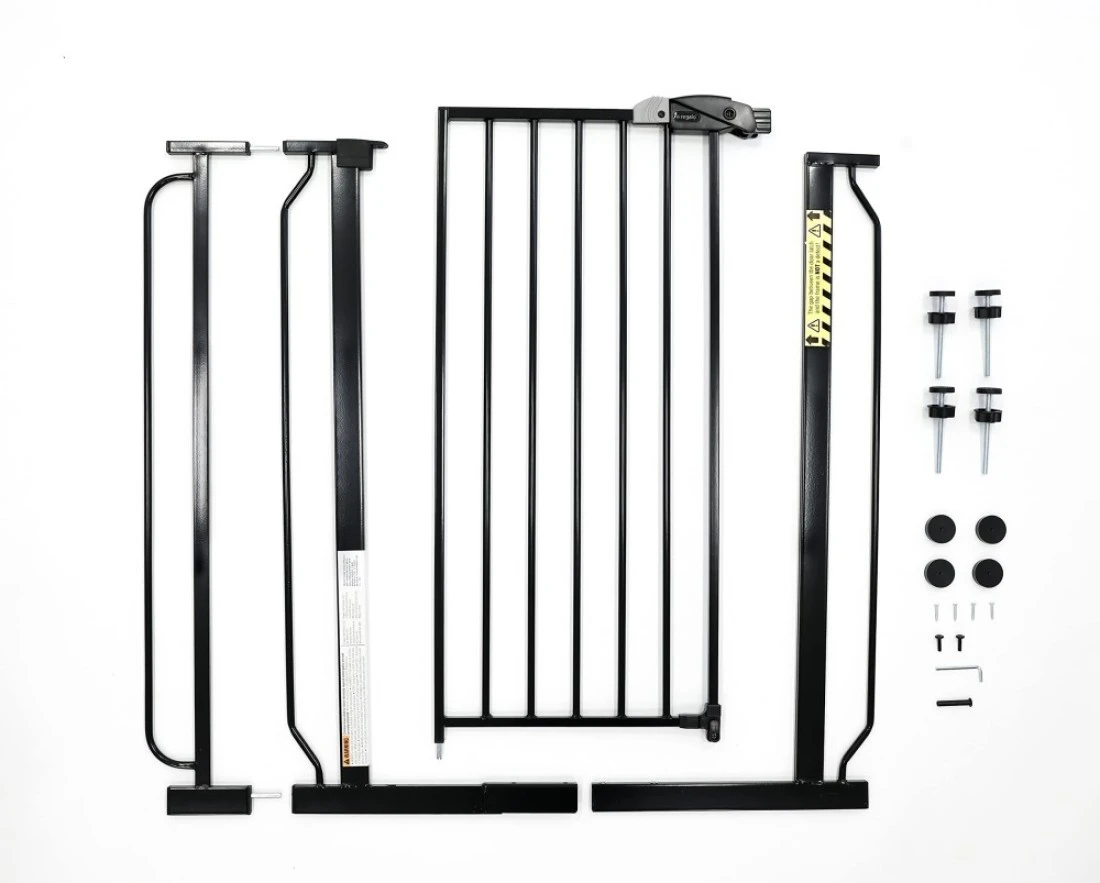 Regalo Easy Step Extra Tall Walk Thru Baby Gate Bonus Kit Includes 4Inch Extension Kit Pressure Mount Kit and Wall Cups and Mounting Kit Black 4 Count Pack of 1