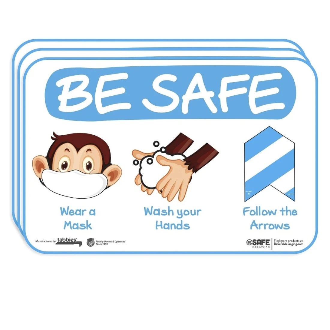 tabbies BeSafe Messaging "Be Safe, Wear a Mask, Wash your hands, Follow the Arrows", 3-Pack 9"x6", Repositionable Kids Education Safety Signs, Perfect for Most Surfaces (29506)