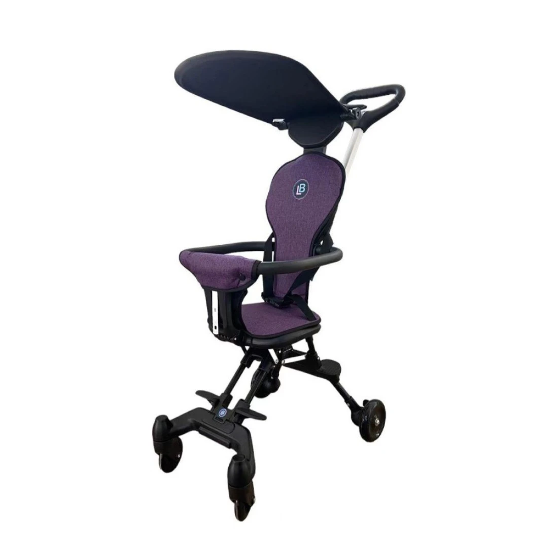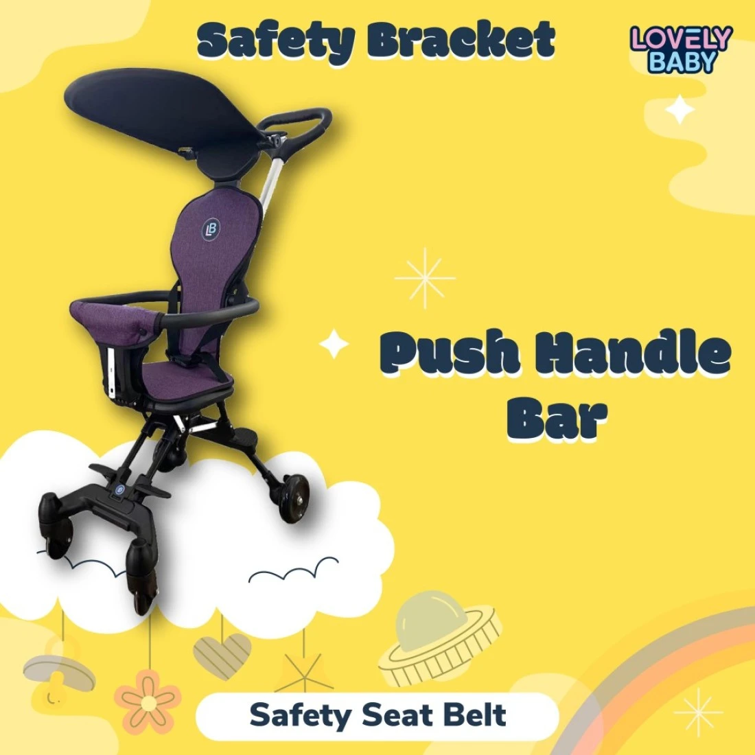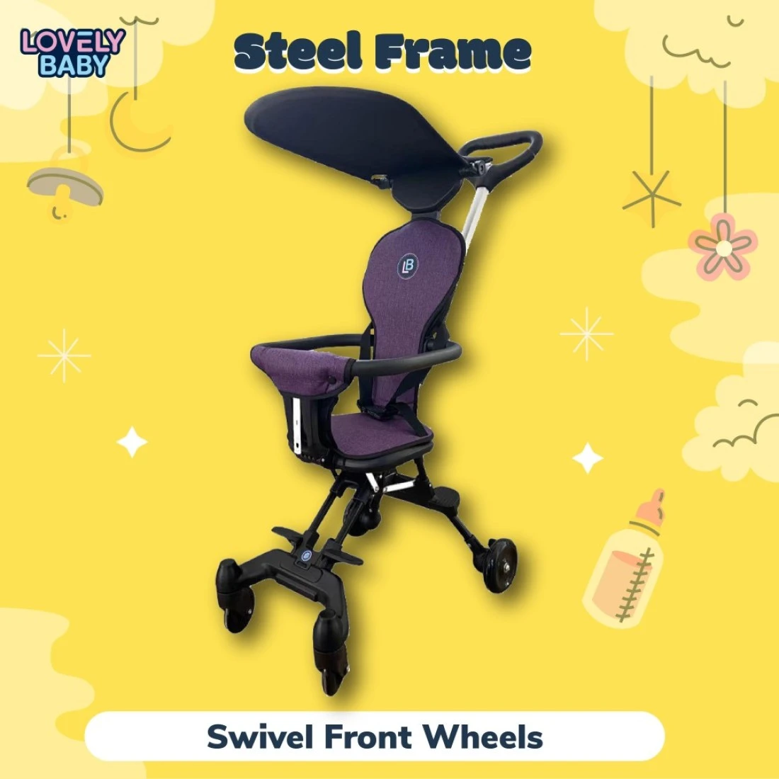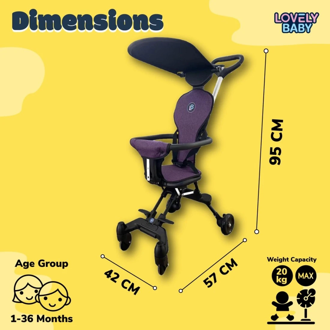 Lovely Baby Stroller LB 715HC for Infants, Baby Carrier with 360° Rotatable PVC Wheels & Canopy, Foldable Pram & Light Weight, Push Stroller for Kids 7-31 Months - Purple