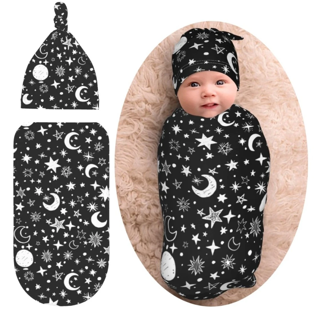Moon Star Baby Stuff Swaddle Blanket Baby Wrap Baby Newborn Blanket Soft Sleep Sack Stretchy With Hat Set Gift For Infant Boy Girl