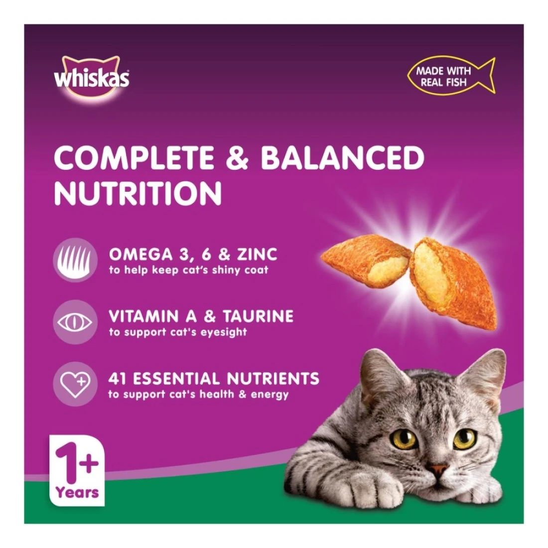 - مصممة بشكل مثالي للقطط البالغة: طعام جاف بحري من ويسكاس وصفة كاملة ومتوازنة تم إعدادها بعناية لتلبية متطلبات جهاز القط البالغ.