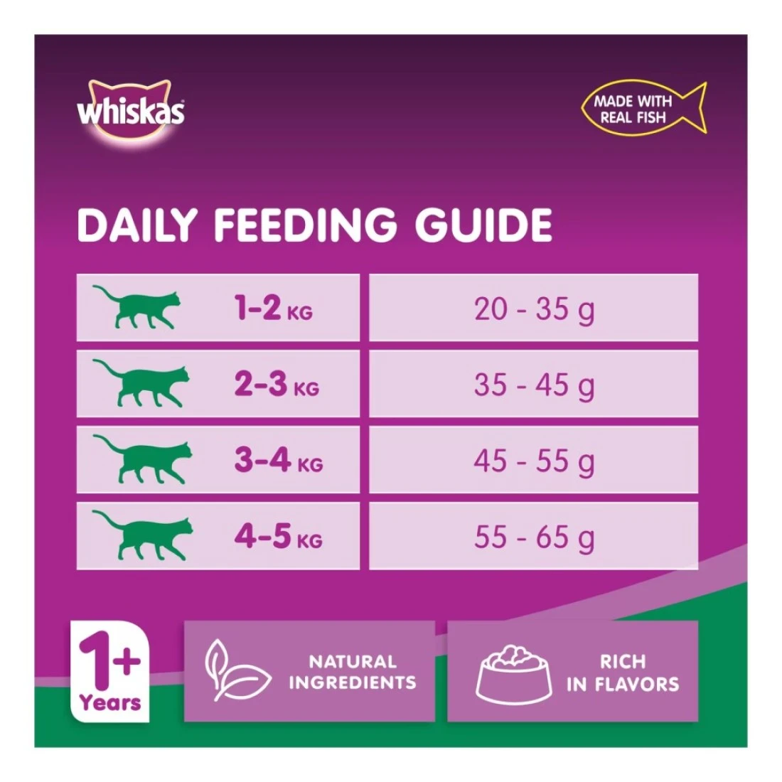 - فراء ناعم يتألق: يوفر ويسكاس النظام الغذائي عالي الجودة اللازم للحفاظ على فروتهم اللامعة. تتميز تركيباتنا بجميع الأحماض الأمينية اللازمة لتكوين خلايا الجلد والشعر الصحي. يضمن فرو صحي لقطك .