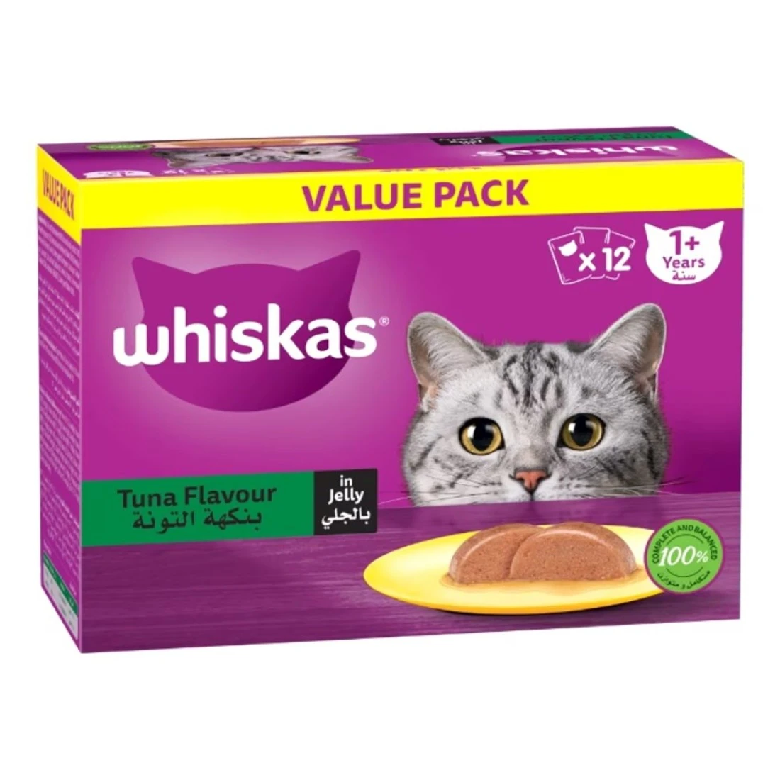 يعتبر طعام ويسكاس بنكهة التونة في جيلي طعام القطط الرطب وجبة لذيذة ومغذية مصممة خصيصًا للقطط من عمر سنة واحدة وما فوق. تحتوي هذه الحزمة على 12 حصة فردية بوزن 80 غرامًا من طعام القطط بنكهة التونة في الجيلي، مما يوفر نظامًا غذائيًا متوازنًا ومتكاملًا لصديقك القطط.
