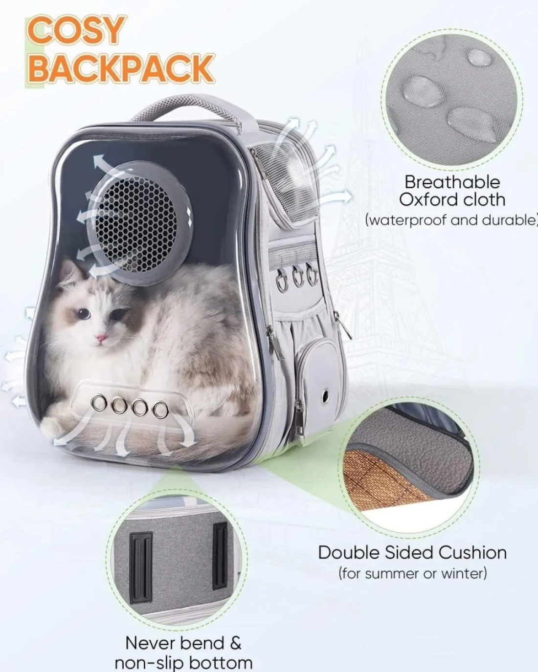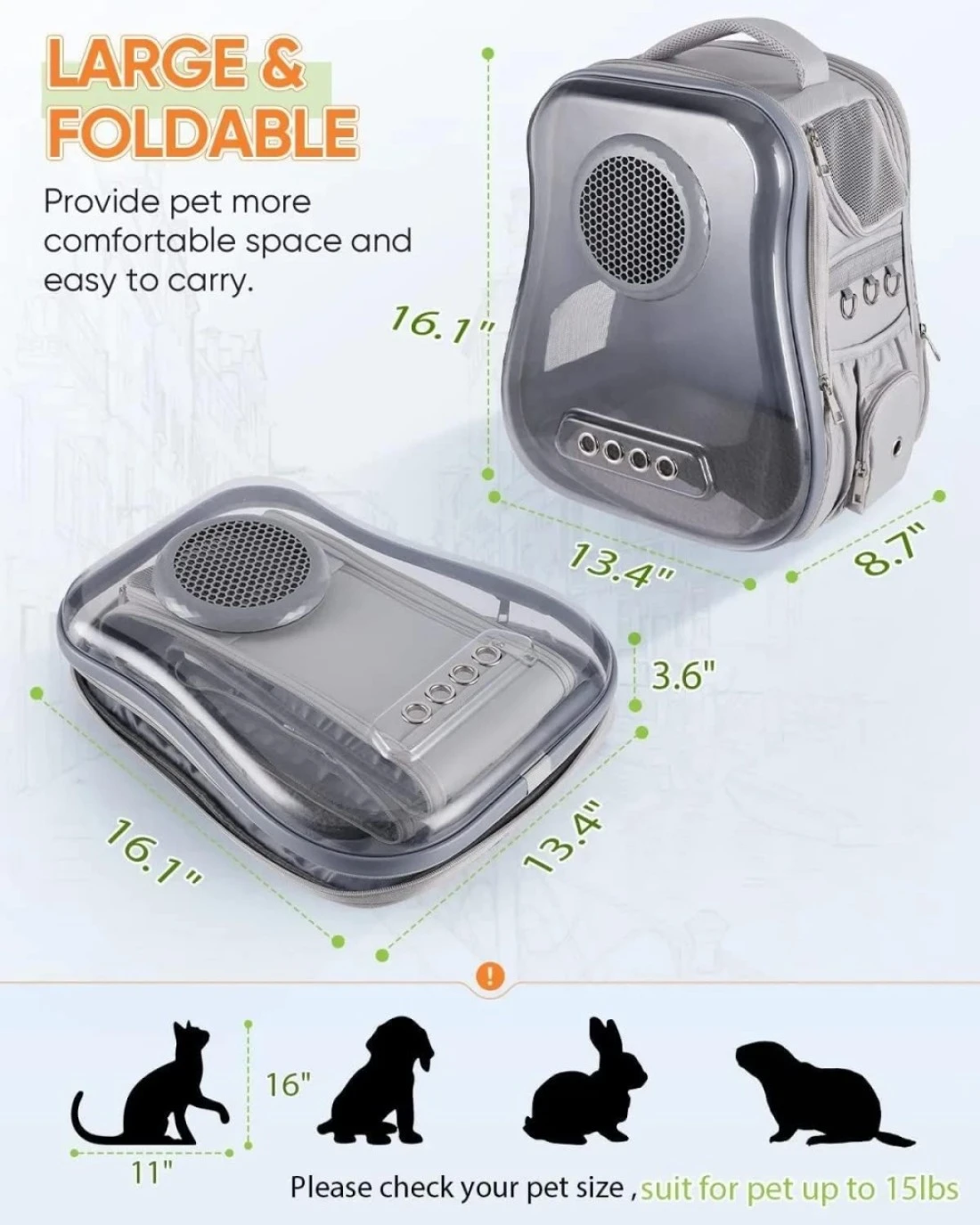 Vsell24 Cat Backpack Carrier Transparent Space Capsule Backpack For Traveling, Camping And Hiking For Cats Kittens And Puppies 40X33.5X24Cm