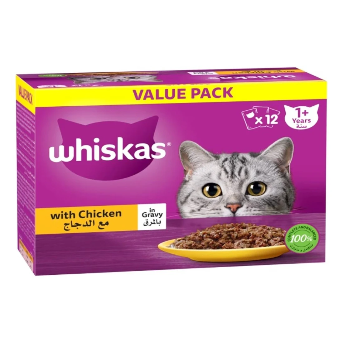 ويسكاس مع الدجاج في مرق اللحم طعام رطب للقطط 1 سنة وما فوق 80 غرام حزمة 12 غرام