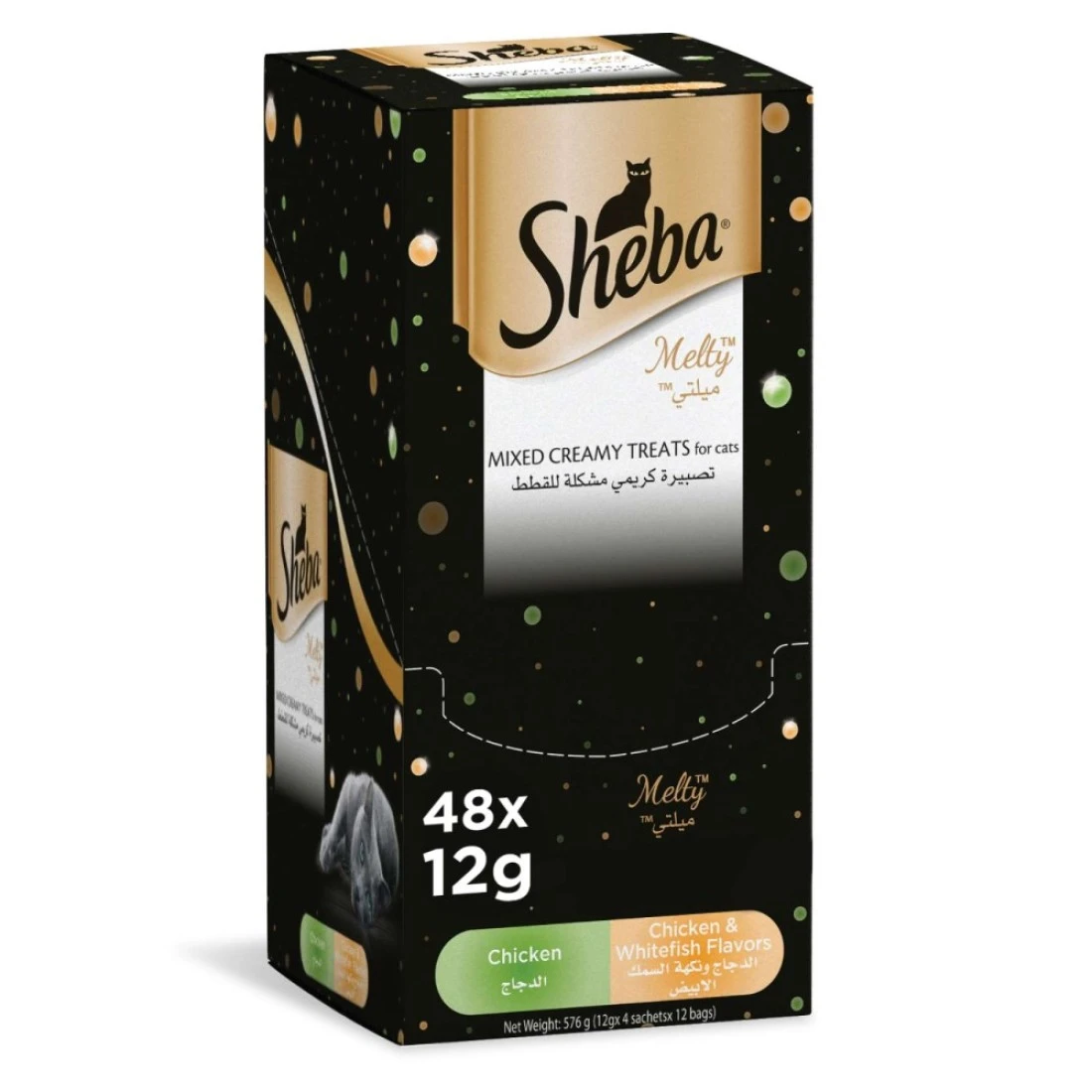 شيبا ميلتي وجبة قطط كريمية بالدجاج والسمك الأبيض 48 غرام حزمة من 12