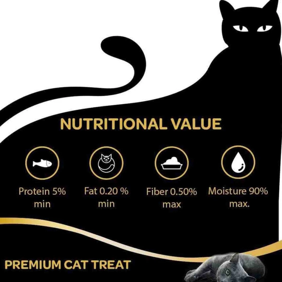 ingredients : لحم الدجاج، تونا، مكثفات، نكهة، ملونات، مواد حافظة، نكهات الدجاج والسمك الأبيض: سمك البحر المنجمي.