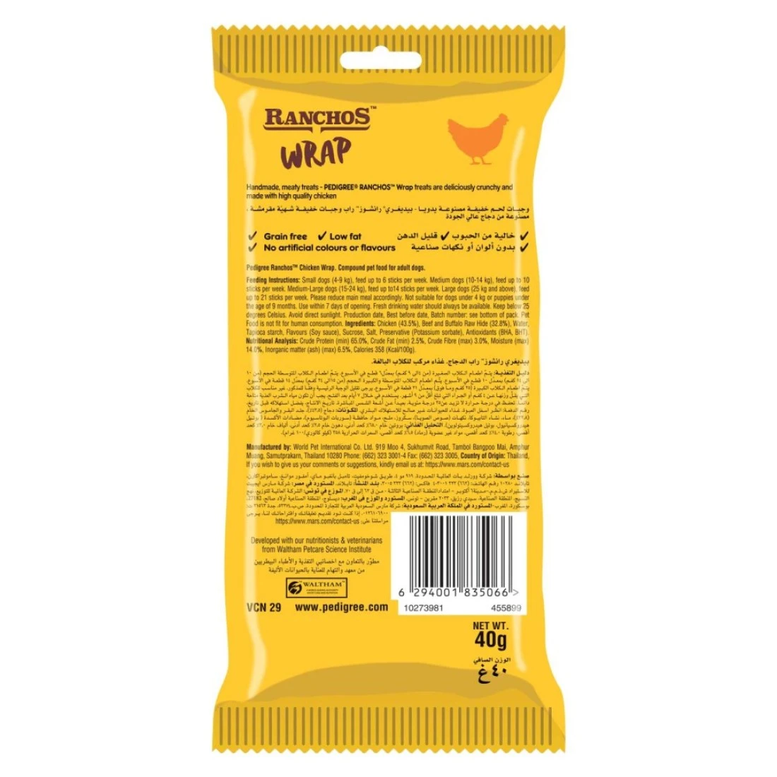 - حجم 40 جرام سهل الحمل، مما يجعله مثاليًا لتناول الوجبات الخفيفة أثناء التنقل أو السفر مع حيوانك الأليف