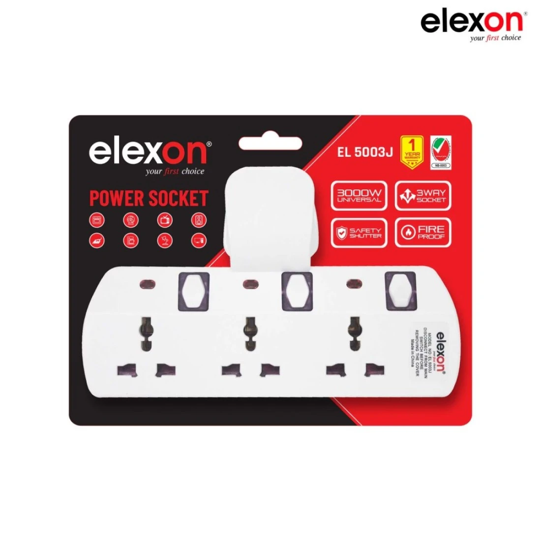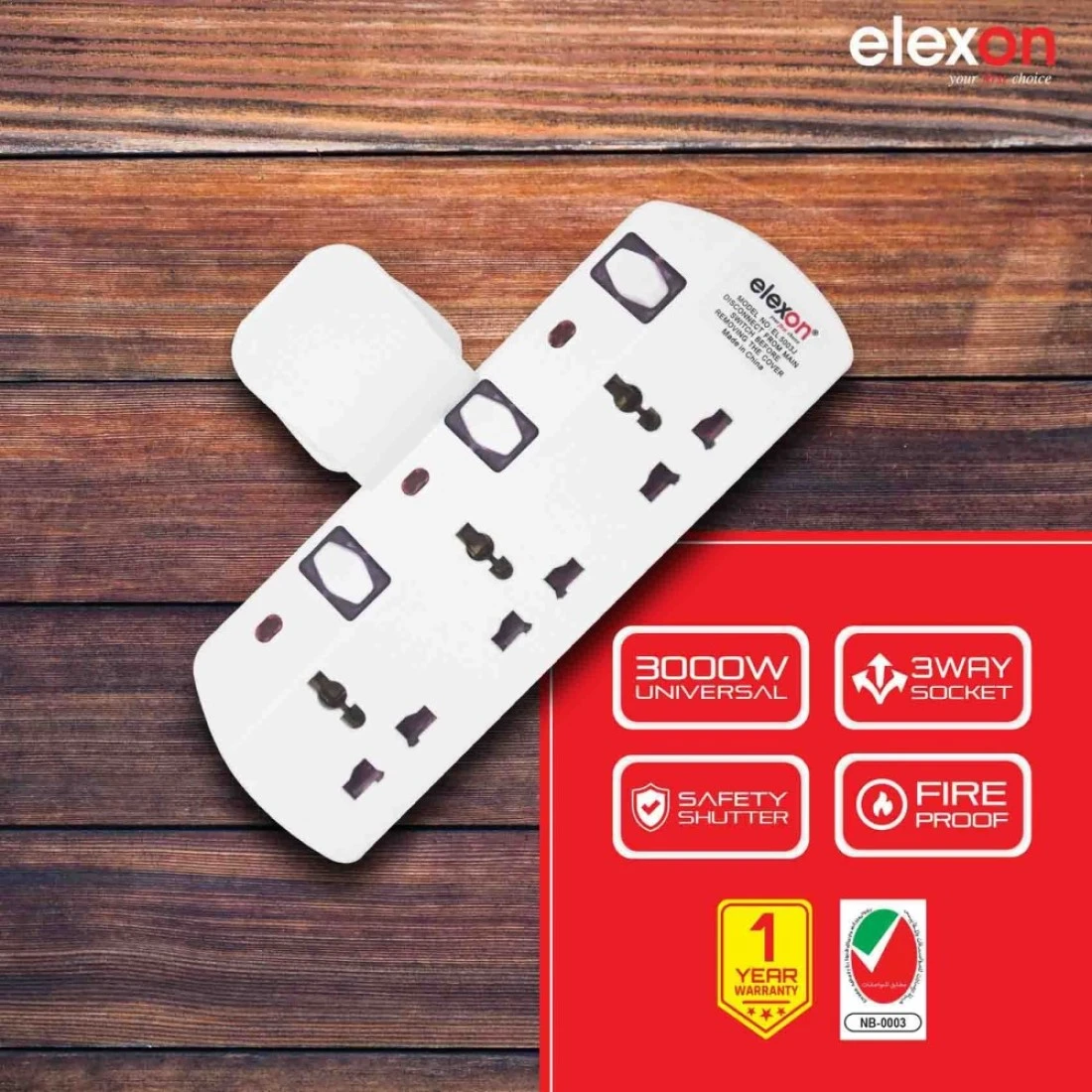 إليكسون مقبس طاقة ثلاثي الاتجاه على شكل تي