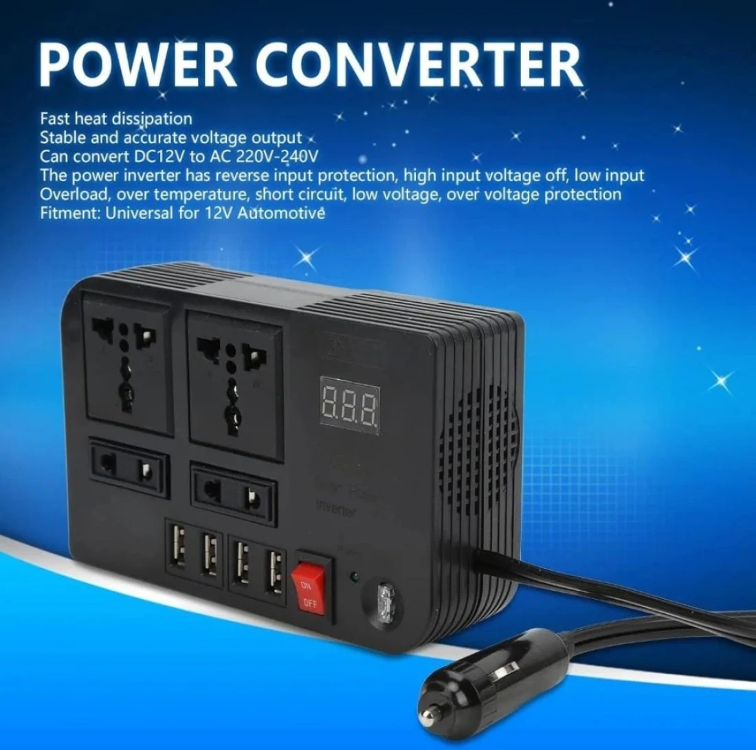 DC to AC Power Conversion: Converts 12V/24V DC from your car into 220V AC, providing power for a wide range of devices.
