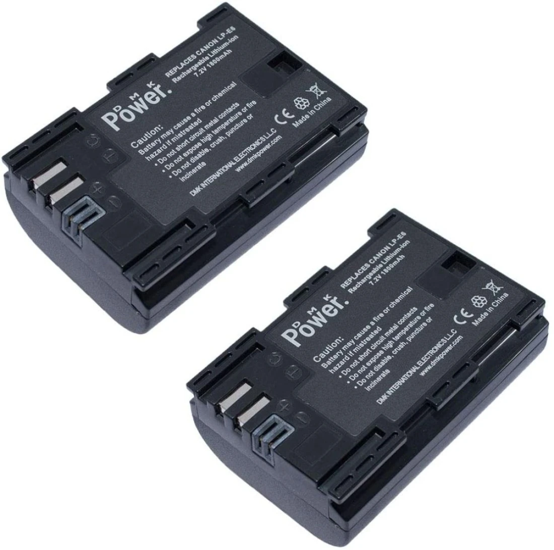 بطارية كاميرا دي ام كيه باور LP-E6N (عبوتين) لكاميرا كانون EOS 5D Mark II Mark III Mark IV 5DS 5DS R 6D 60D 60Da 6D Mark II 7D Mark II 70D 80D R XC10 XC15