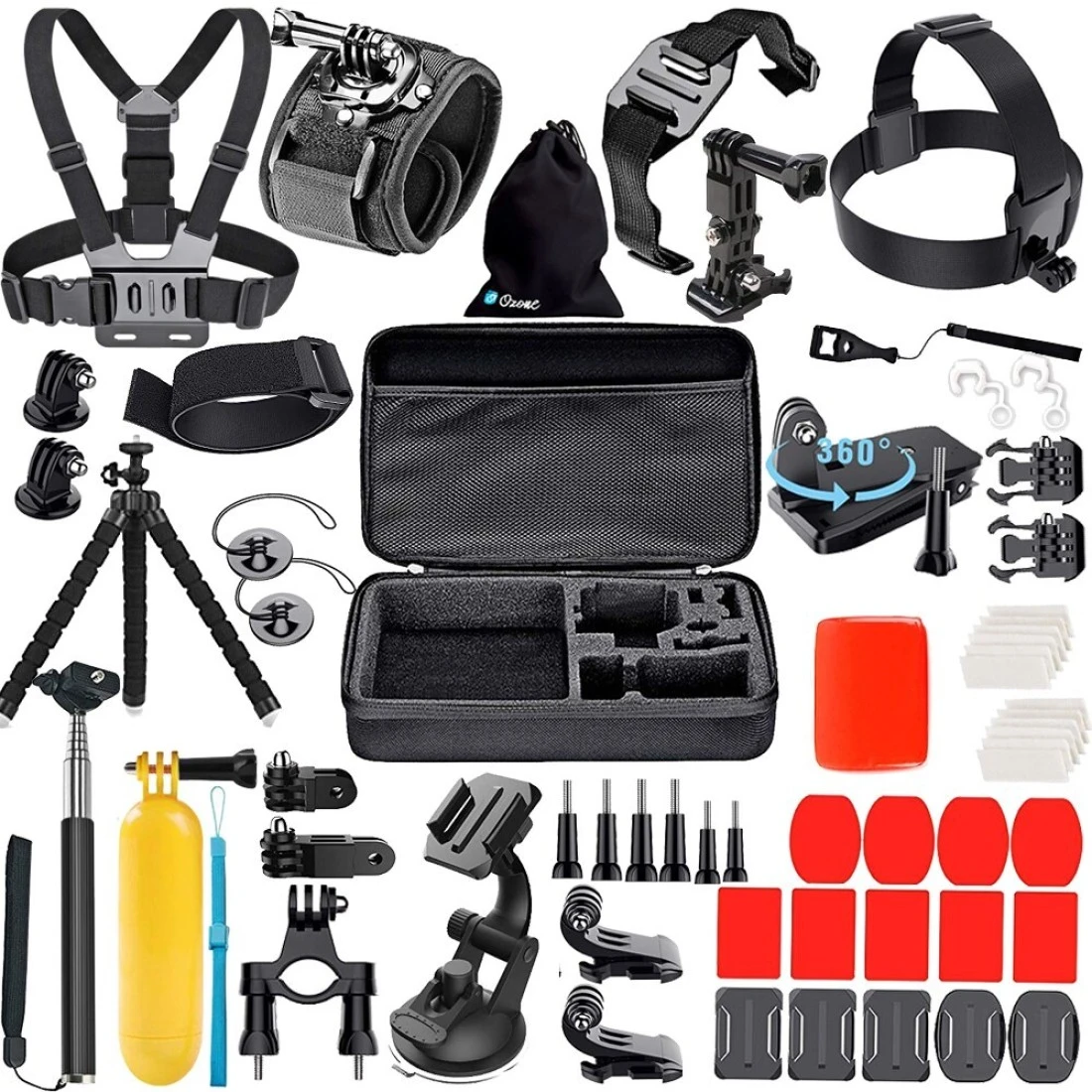 Ozone - Action Camera Accessories 56 in 1 Travel Kit For GoPro Hero 8 Black Hero 8 Max Hero 5 Hero 4 3 GoPro Session 2018 DJI Yi SJCAM Sports Action Camera (All in 1 Accessory for Action Camera)