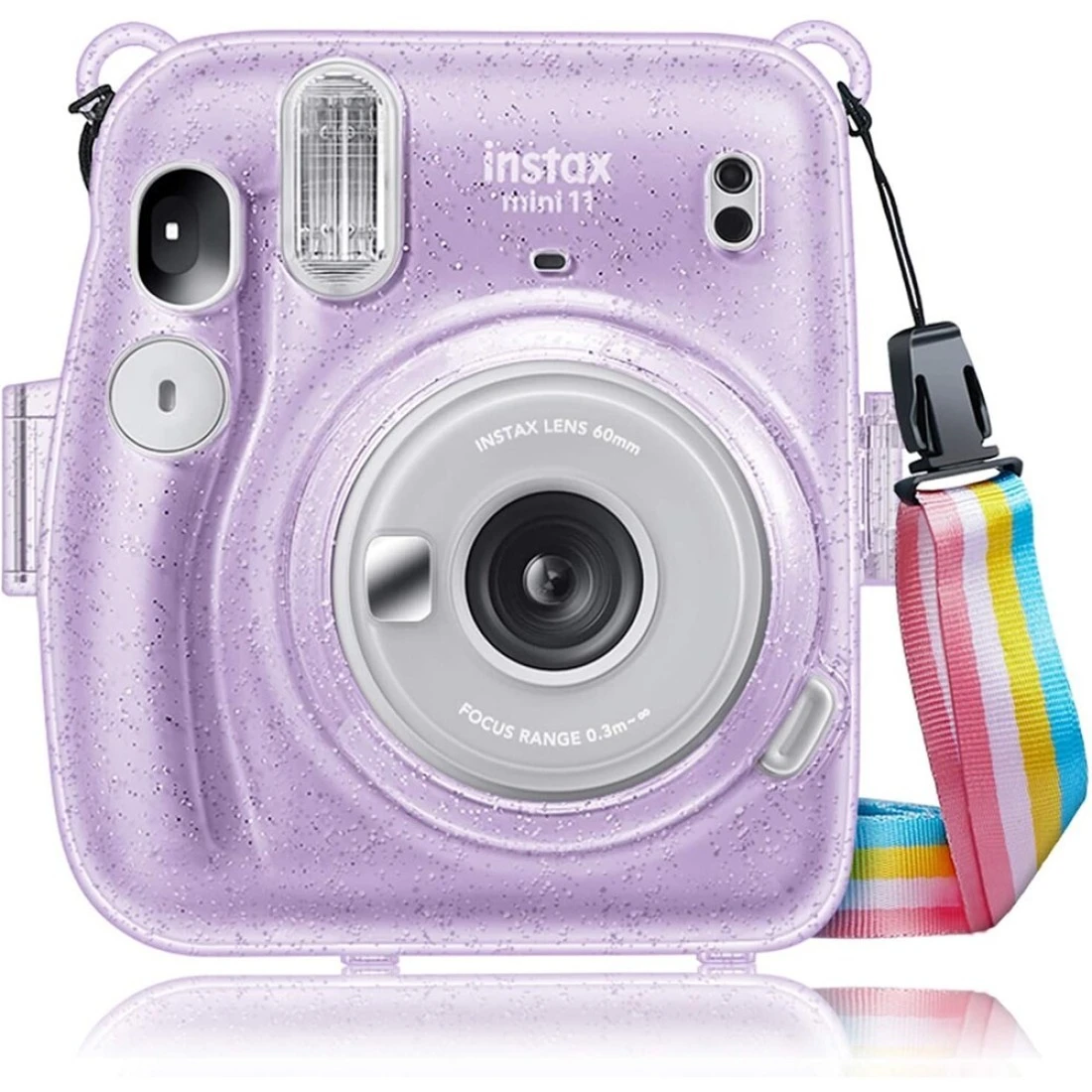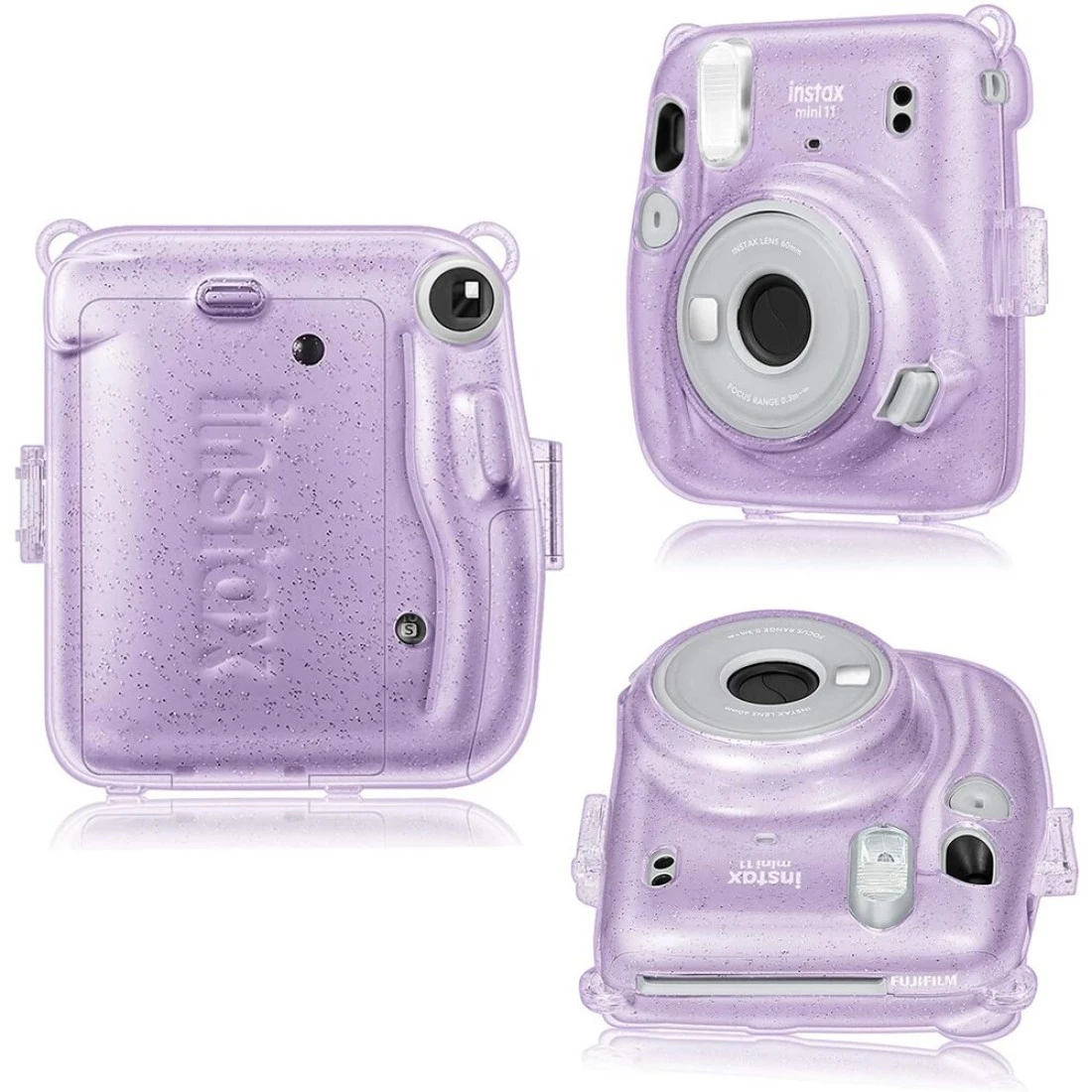 حافظة اوزون شفافة لكاميرا فوجي فيلم انستاكس ميني 11 مع حزام قابل للتعديل (صُممت حافظة لامعة لحافظة انستاكس ميني 11) - ارجواني لامع