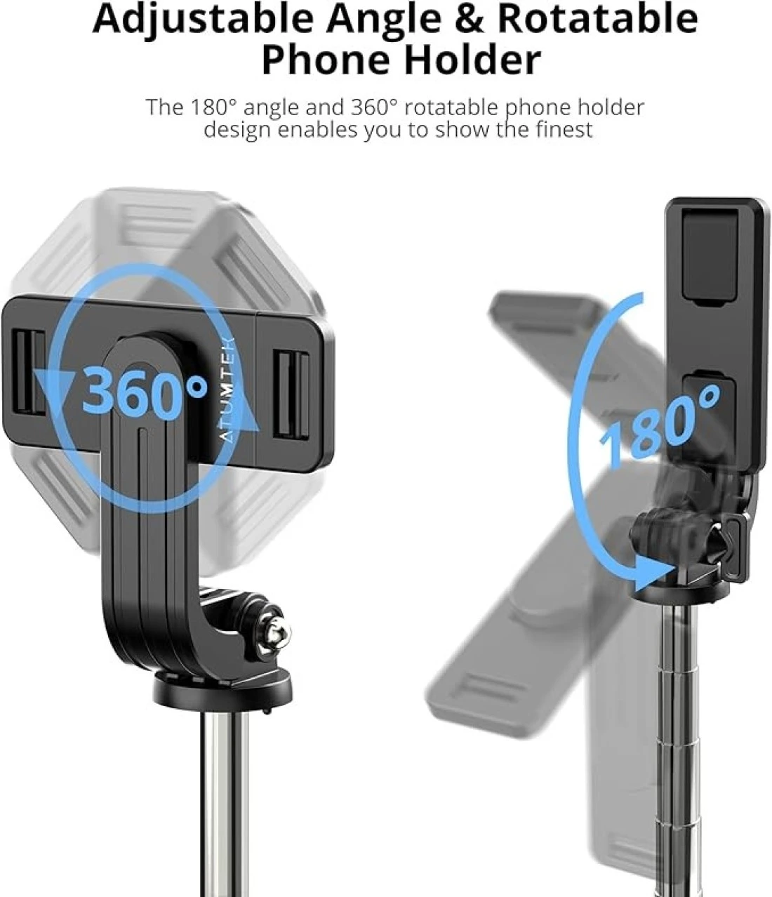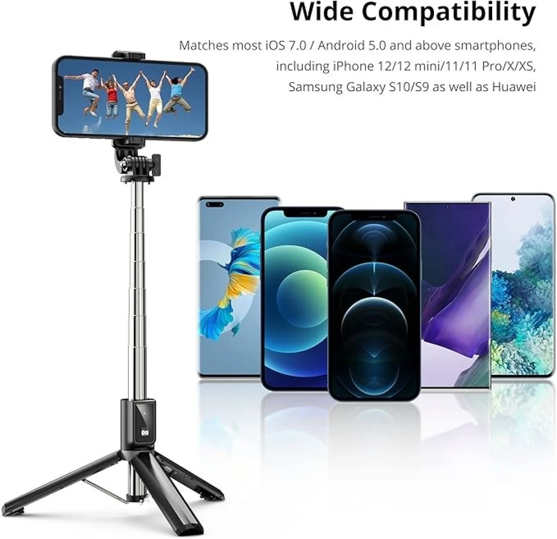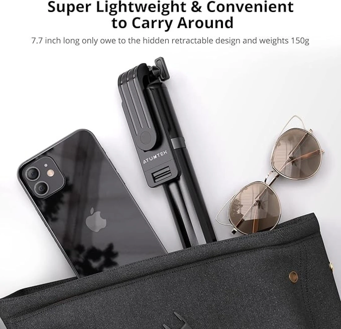 ATUMTEK 40" Selfie Stick Tripod, Extendable Bluetooth Selfie Stick with Wireless Remote, 360-degree Rotation, Compatible with GoPro, iPhone and Android Smartphones, Mini Tripod, Table Tripod Black