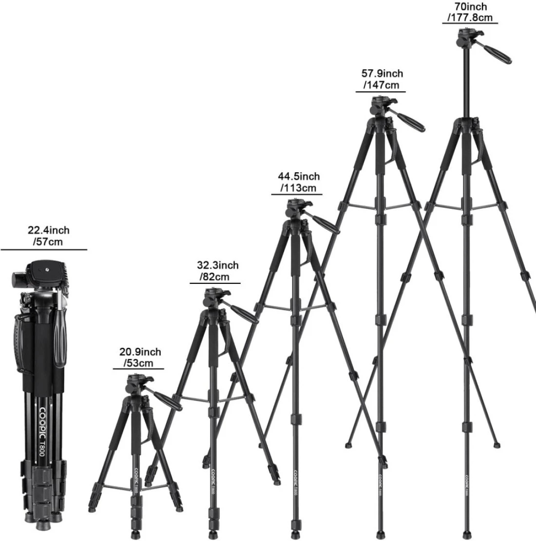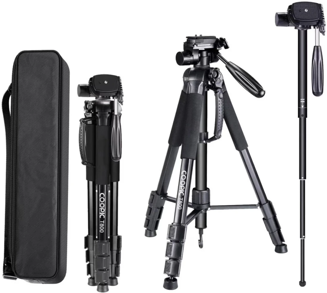 COOPIC T800 2 in 1 Tripod and Monopod 69.5/176.5cm Lightweight Portable Tripod for SLR/DSLR Cameras with tripod bag (Max Load 4Kg)