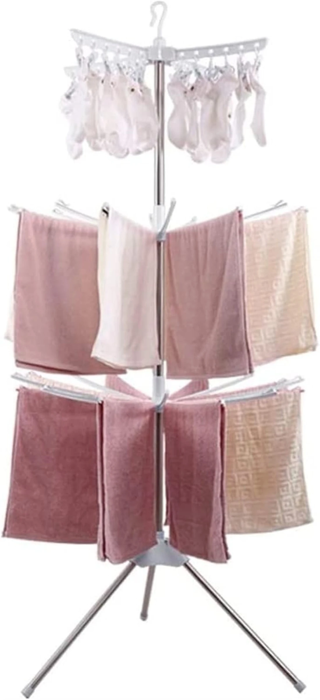 Versatile 3-Tier Design: This 3-tier rotating clothes and towel organizer provides ample space for drying various items, from large towels to delicate garments. Its rotating functionality ensures easy access to each tier, streamlining your drying process.