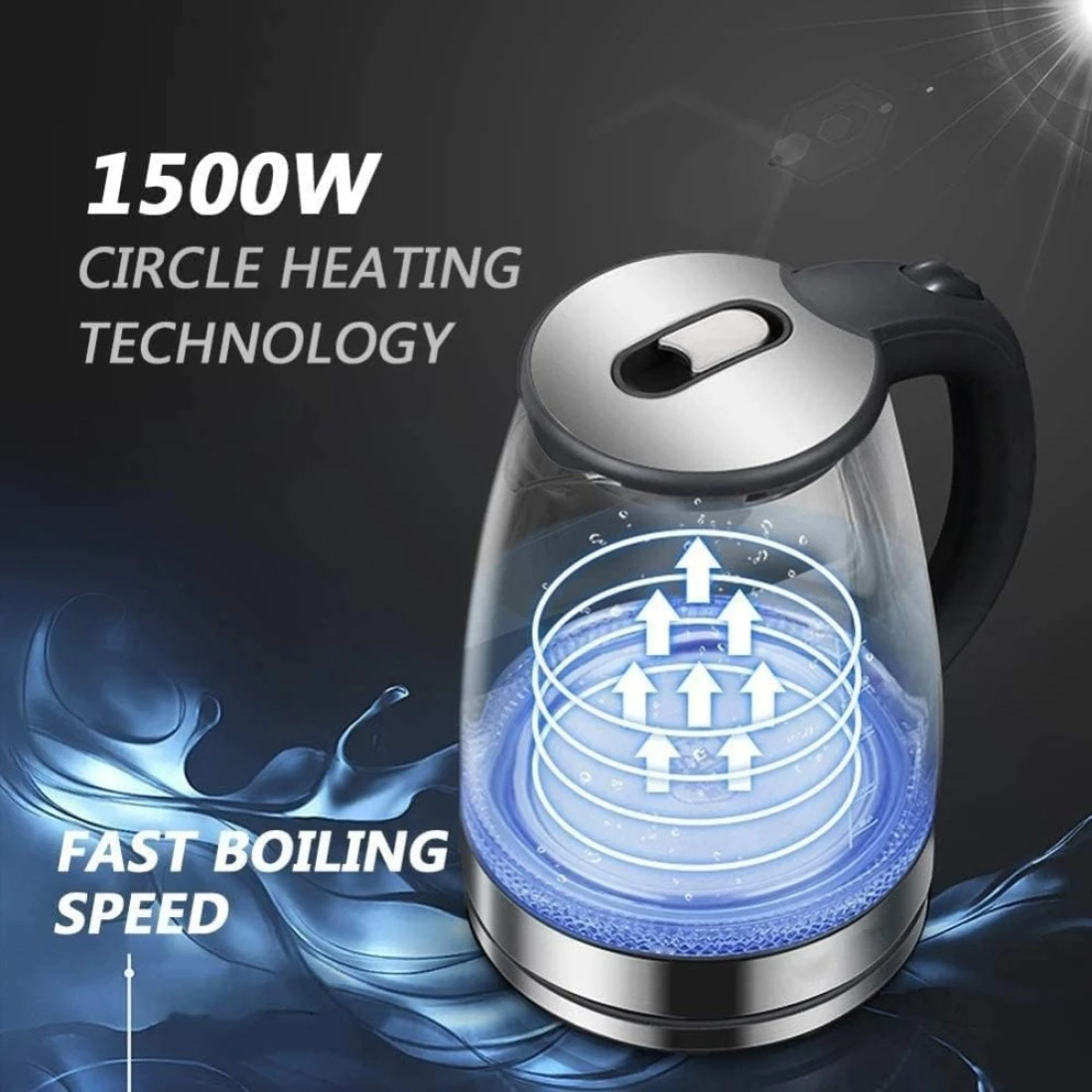GStorm High Borosilicate Glass and Stainless Steel + ABS 2.0 L Electric Kettle