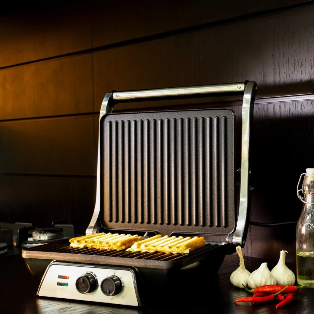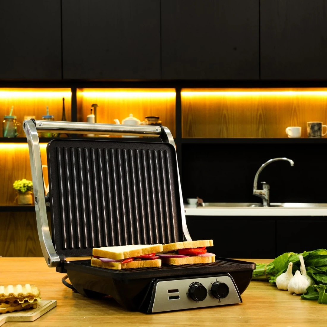Olsenmark 2000W Super-Jumbo Grill Sandwich Maker - OMGM2441, Non-Stick Coated Plates, Opens 180 Degrees with Cool Touch Handle, Adjustable Temperature & Timer with Indicator Light, 2 Year