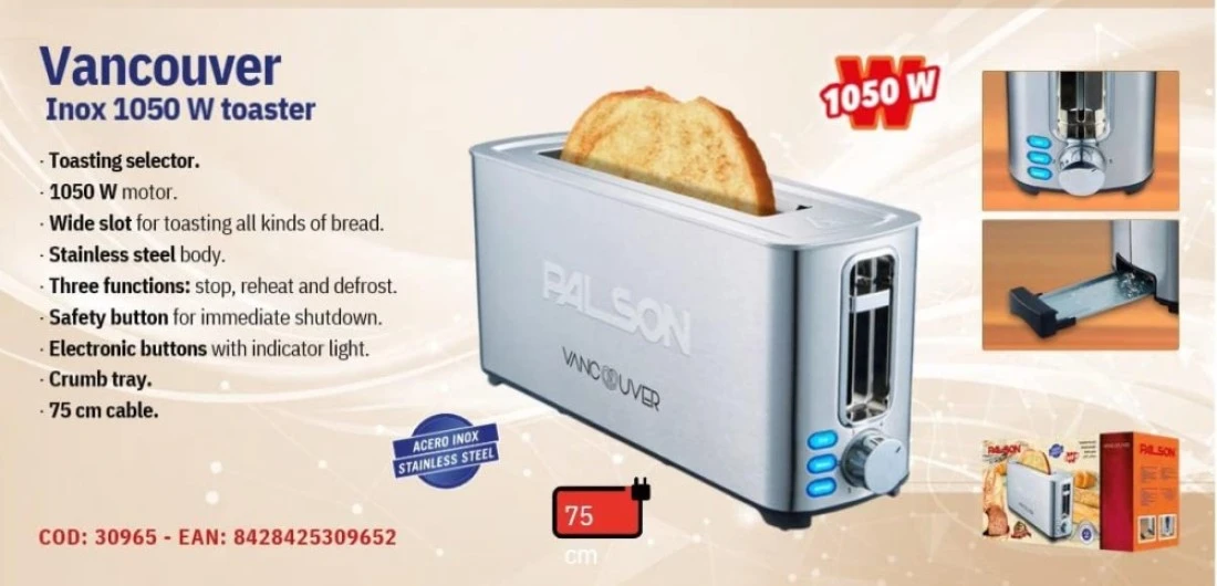 Palson Vancouver Inox 1050W 2 Slice Toaster