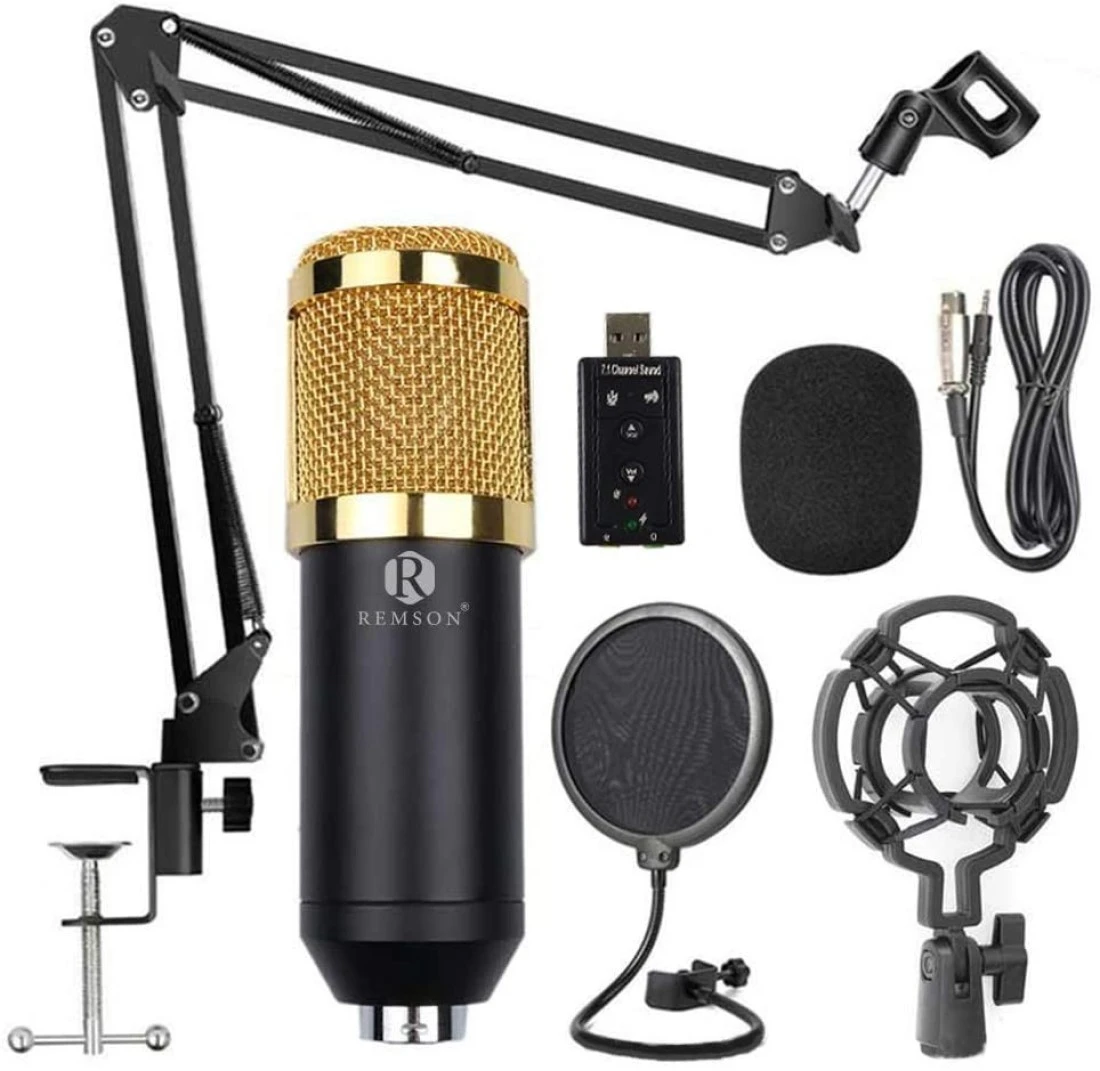 Remson Microphone Condenser Studio Set, Microphone Condenser Kit With Adjustable Microphone Suspension Scissor Arm, Shock Mount And Double-Layer Pop Filter (Gold Black)
