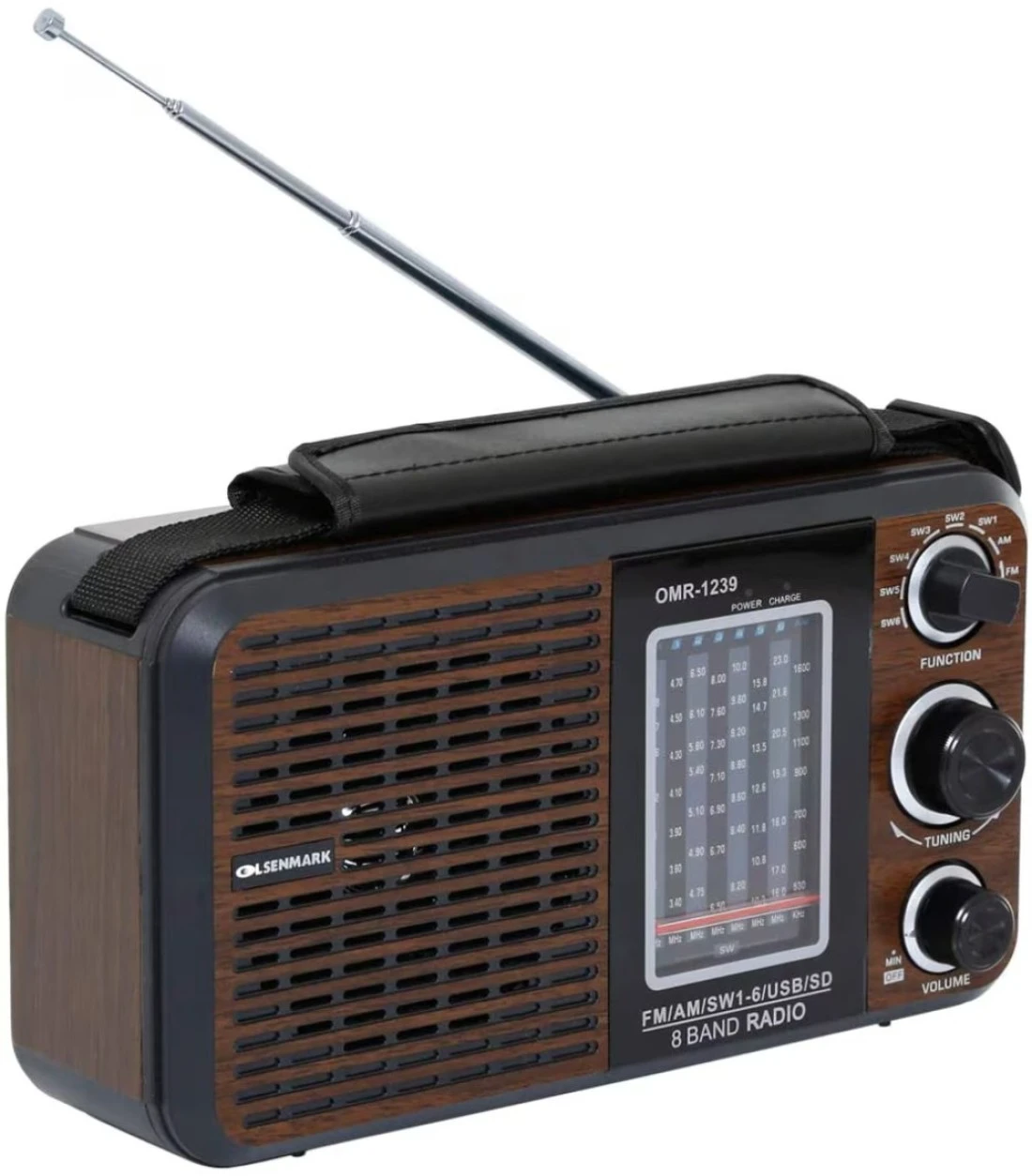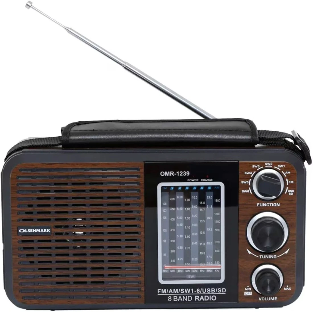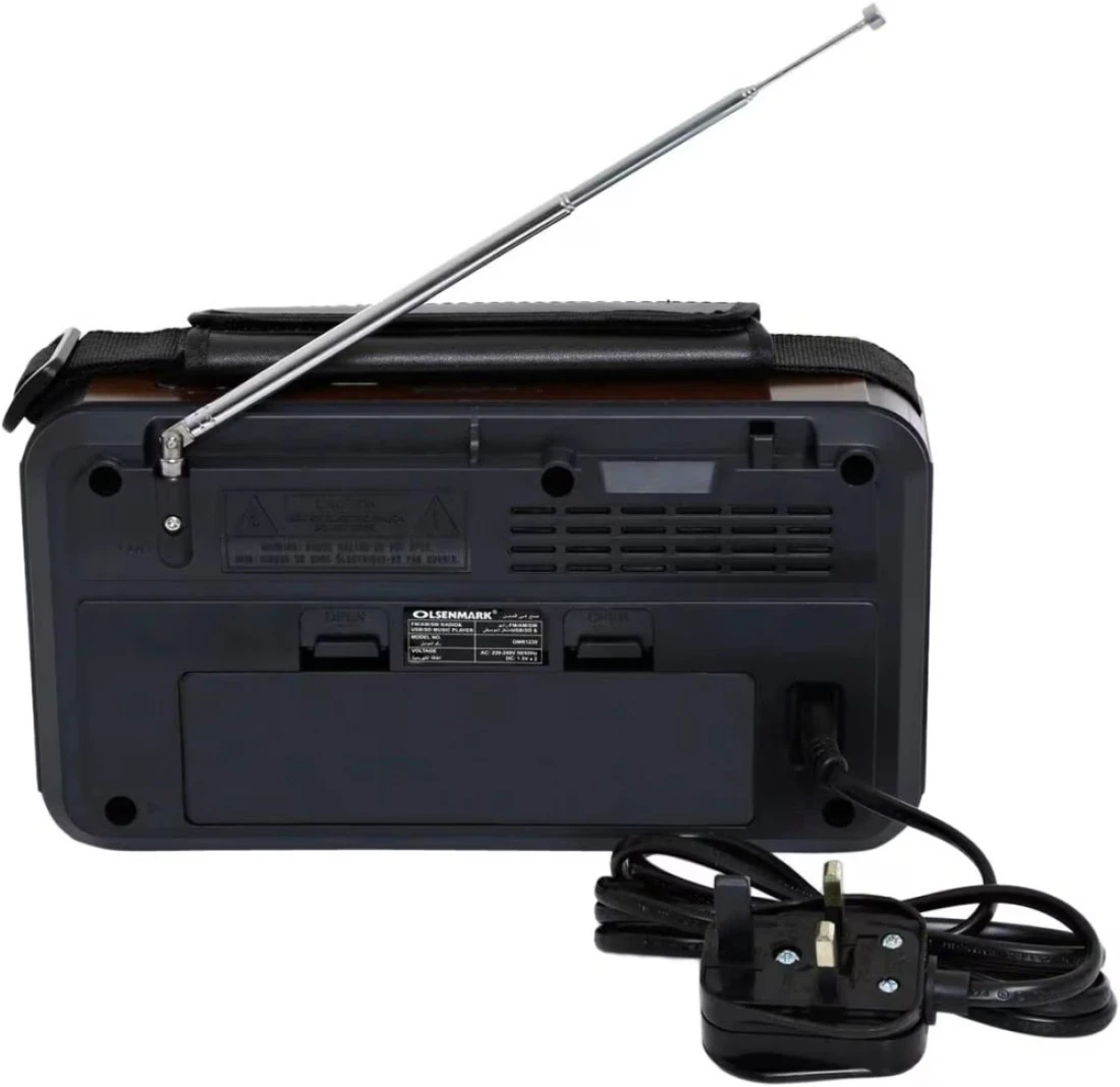 Olsenmark FM/AM/SW Radio and USB/SD/BT Music Player- OMR1239 Good Sound Quality and Low Noise Equipped with Built-In Rechargeable Battery Portable and Lightweight Design Brown, 2 Years W
