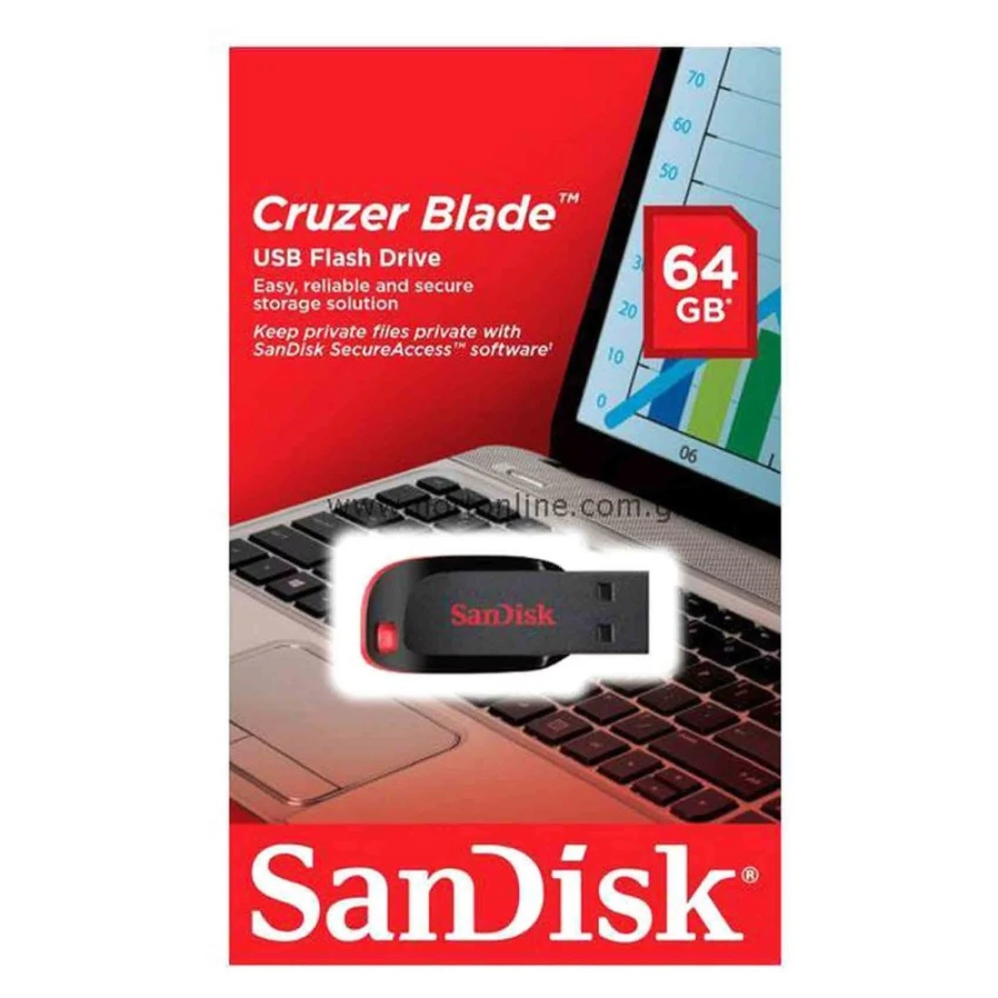 فلاش درايف USB 2.0 سانديسك كروزر بلايد بسعة 64 غيغابايت - SDCZ50