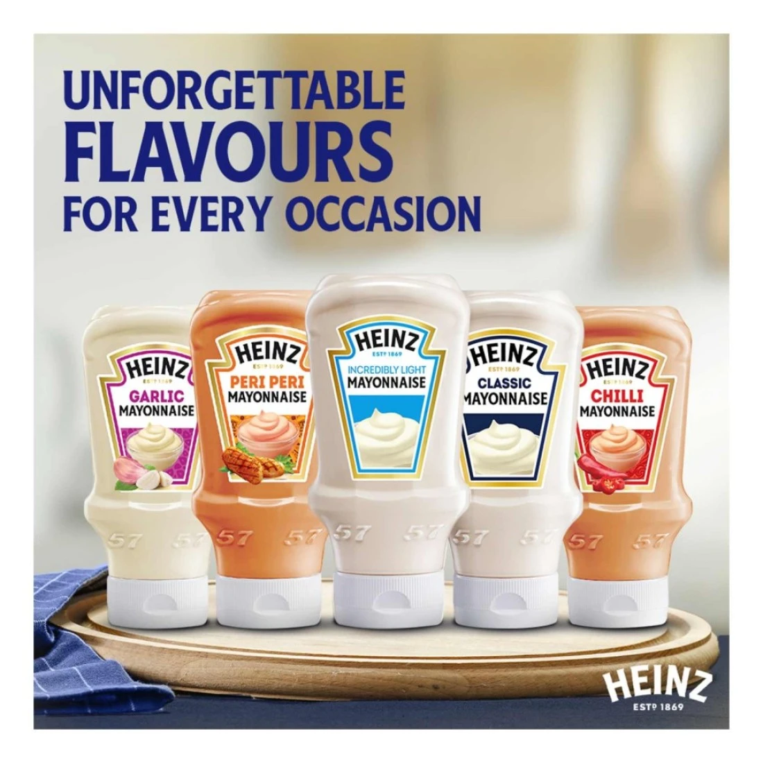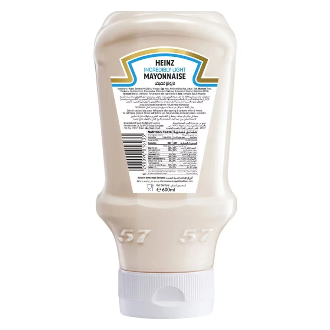بنسبة دهون أقل من المايونيز العادي، مايونيز هاينز الخفيف للغاية مثالي إذا كنت تراقب تناول السعرات الحرارية ولكنك لا تريد التنازل عن الطعم. هاينز قد قامت باستخدام خبرتها لتطوير صلصة لذيذة بنكهة مميزة لتناسب الأطعمة اليومية مثل السلطات والسندويشات والشيبس أو الأطعمة الخفيفة. مايونيز هاينز الخفيفة للغاية، الذي يأتي في قارورة قابلة للعصر للأسفل، مصنوع من بيض الدجاج البلدي الحر ولا يحتوي على ألوان أو نكهات مضافة أو مثخنات صناعية. مايونيز هاينز الخفيف للغاية هو النكهة الوحيدة التي تأسرك!