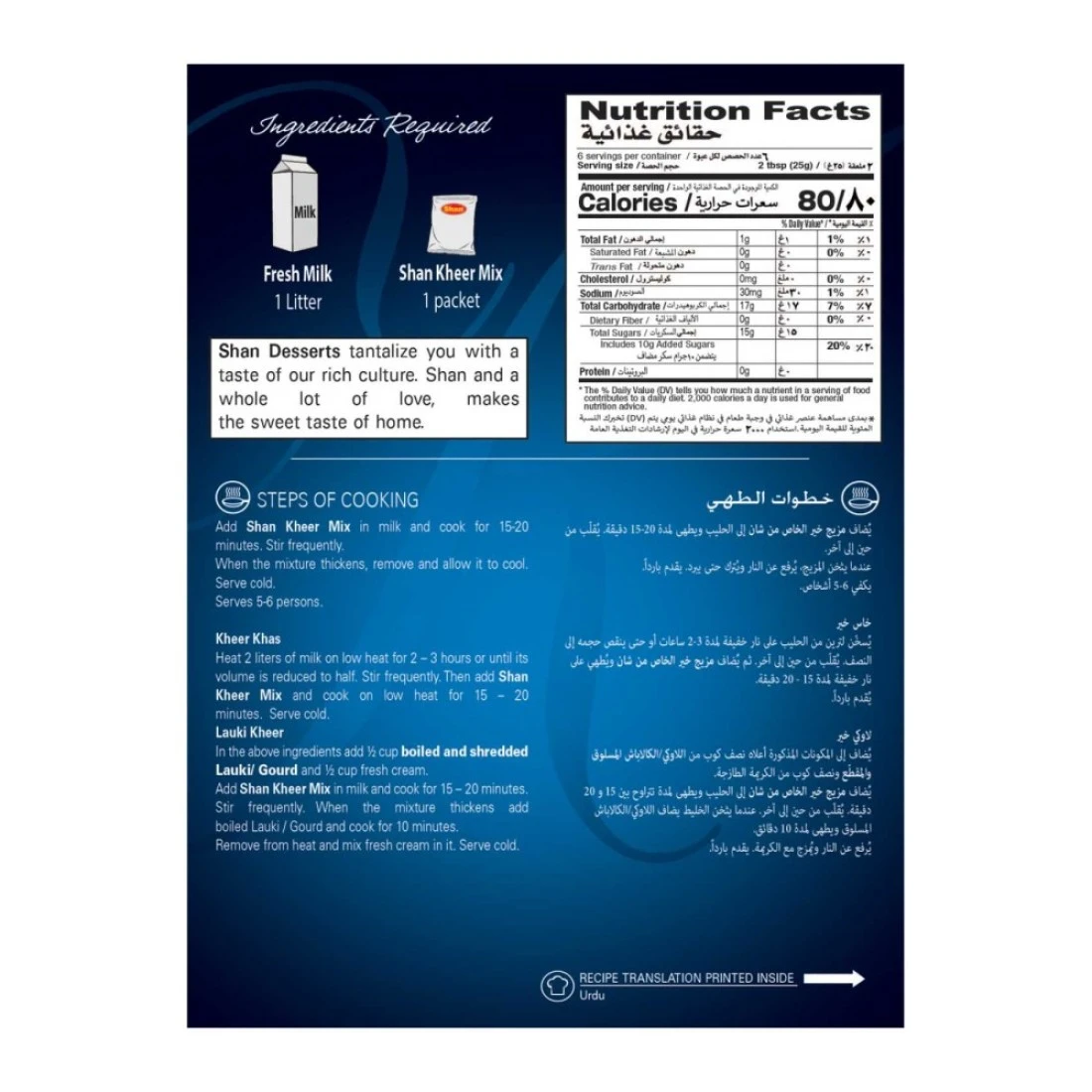 شان سبيشال خير ميكس هو مزيج مناسب وسهل الاستخدام من المكونات لصنع بودينغ الأرز الباكستاني التقليدي. تحتوي هذه الحزمة على عبوتين كل منهما 150 غرام، مثالية لصنع خير لذيذ وكريمي في المنزل.