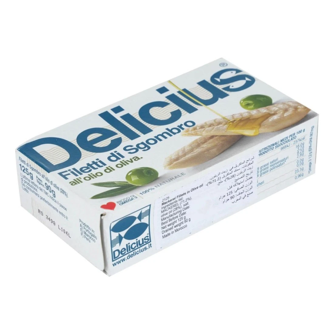 ديليسيوس شرائح سمك ماكريل في زيت الزيتون 125 غرام