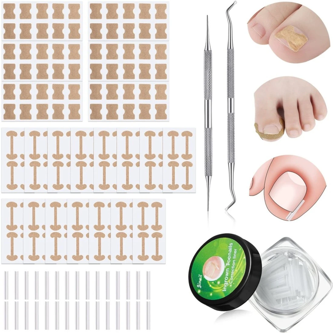Lanties 152 Pieces Ingrown Toenail Corrector Treatment Tool Sets Include Curved Toenail Brace Nail Toenail Corrector Sticker Ingrown Toenail Corrector Strips Toenail File and Lifter