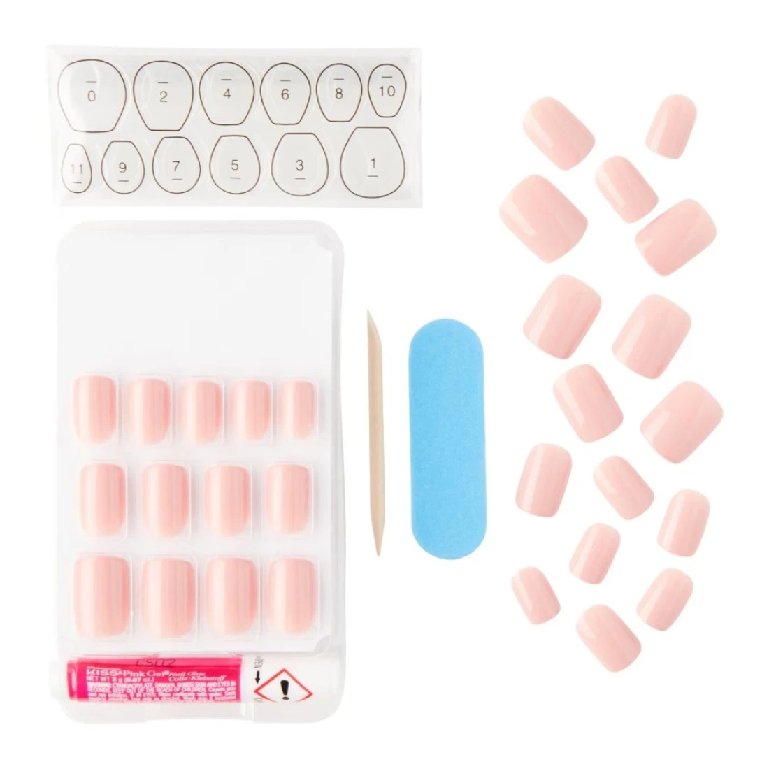كيس جل فانتازي كالر أظافر إصطناعية مع أشرطة لاصقة - وردي 24 قطعة