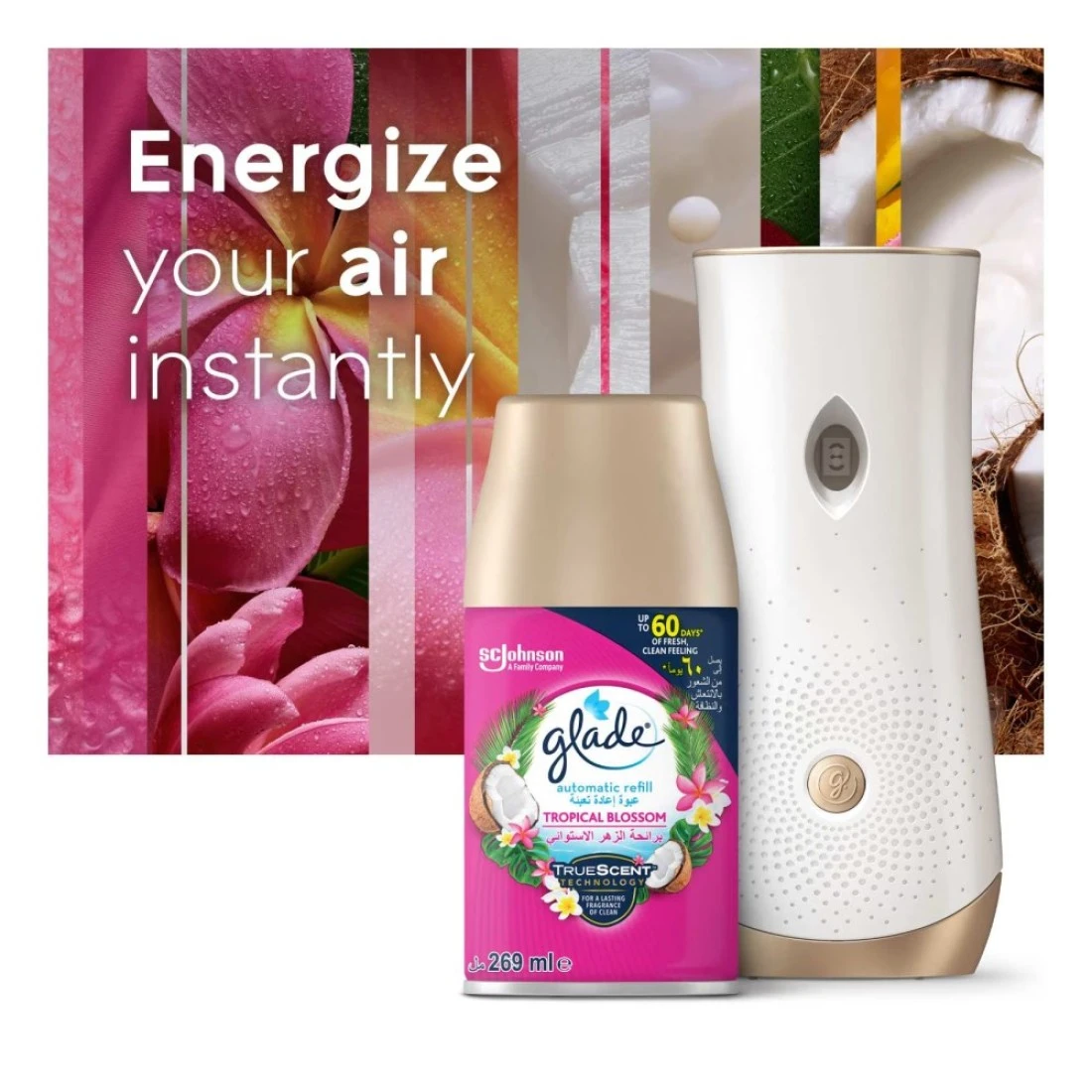 غلايد بخاخ أوتوماتيكي قابل لإعادة التعبئة برائحة الأزهار الإستوائية الغريبة - شفاف 269 ملل
