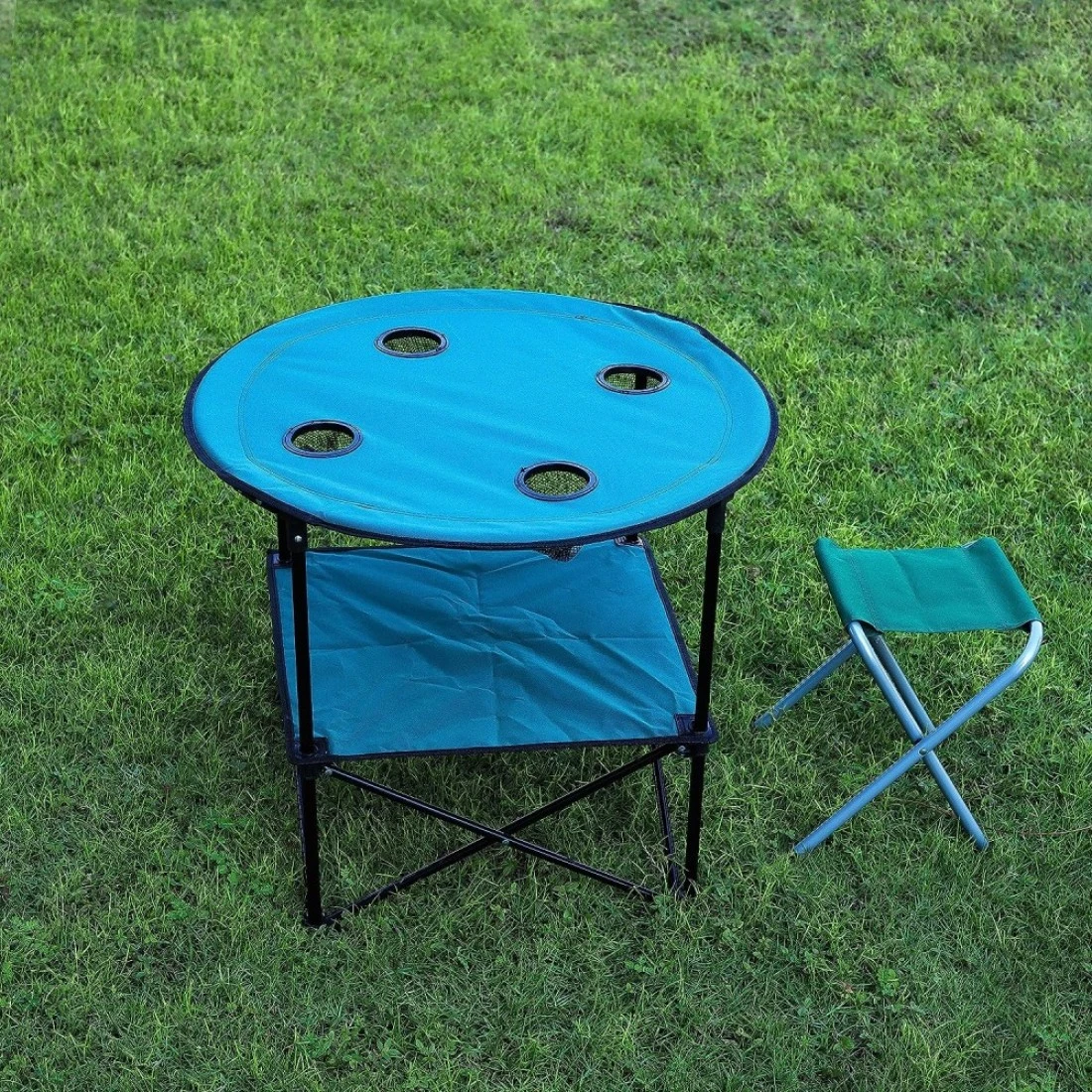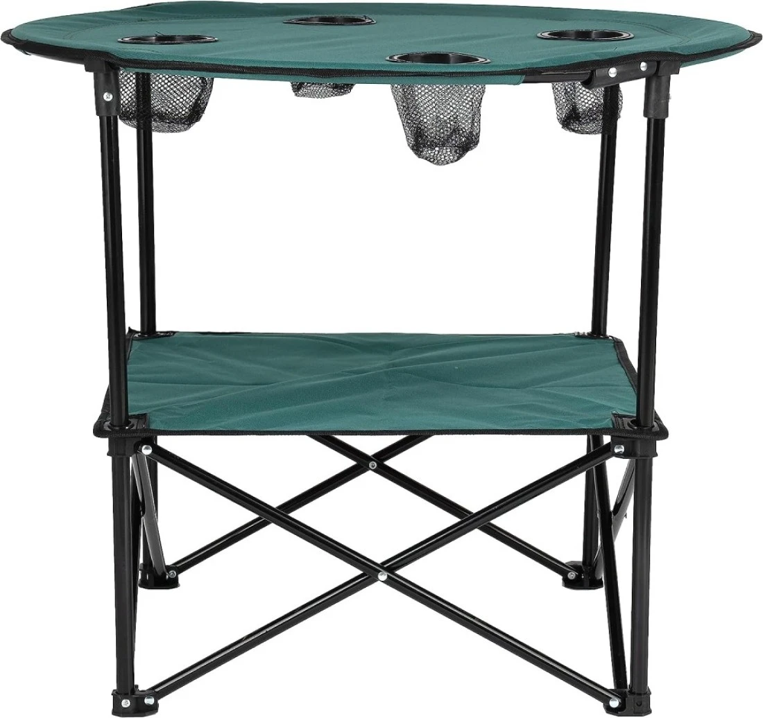 Royalford Round Camping Table-Rf11673 Lightweight, Portable And Foldable, Folds Flat For Storage Iron Tube With Washable Cloth, Perfect Indoor And Outdoor Entertainment Package Includes Carry Bag Blue