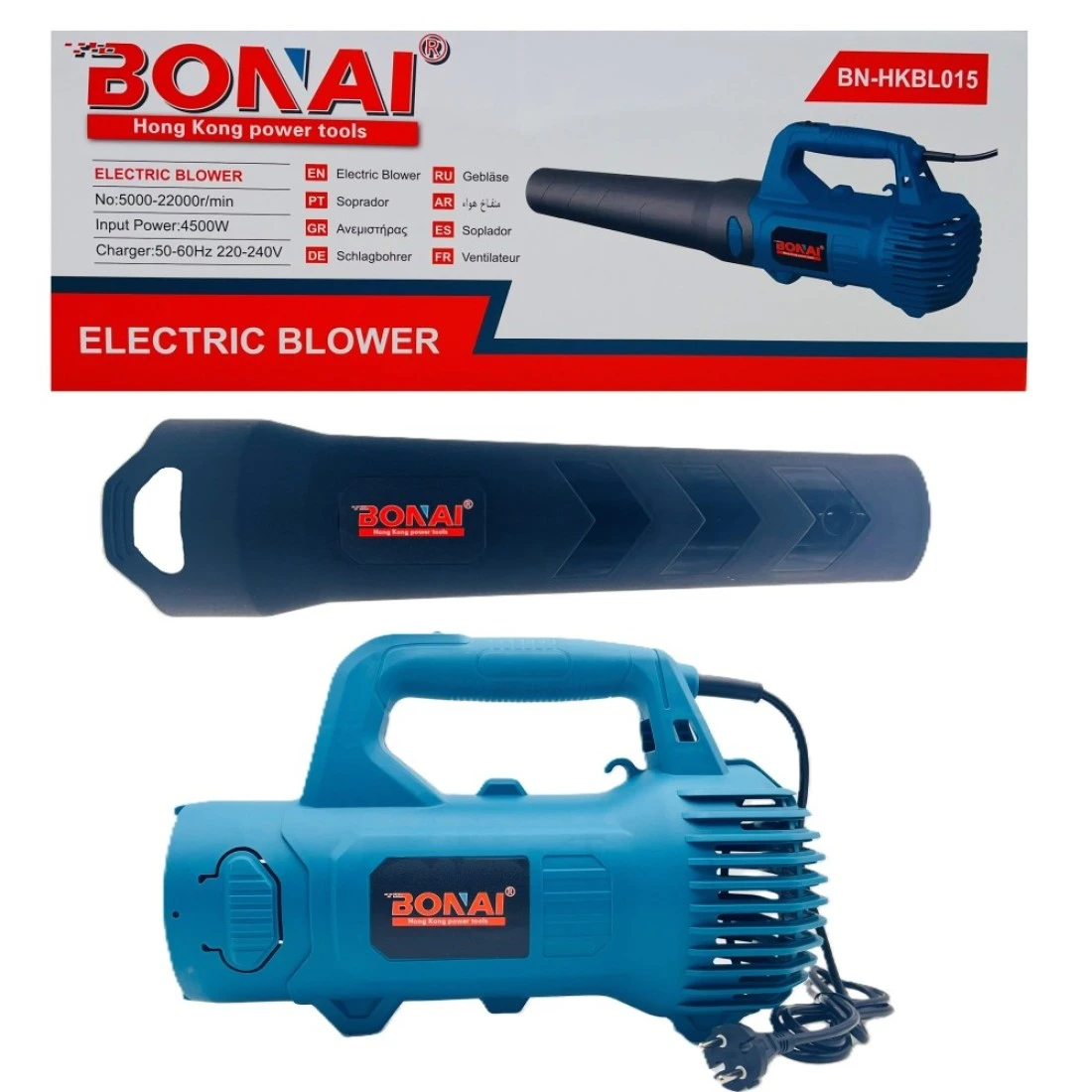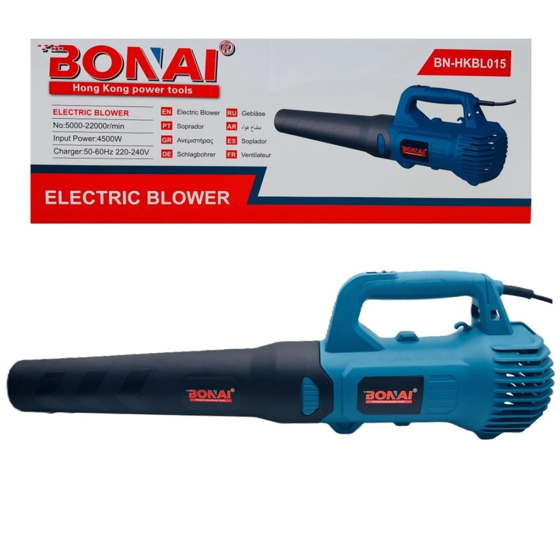 BONAI Electric Blower, 4500W Power, 5000-22000 RPM, 220-240V, Heavy Duty Portable Leaf and Dust Blower for Outdoor and Indoor Use, BN-HKBL015