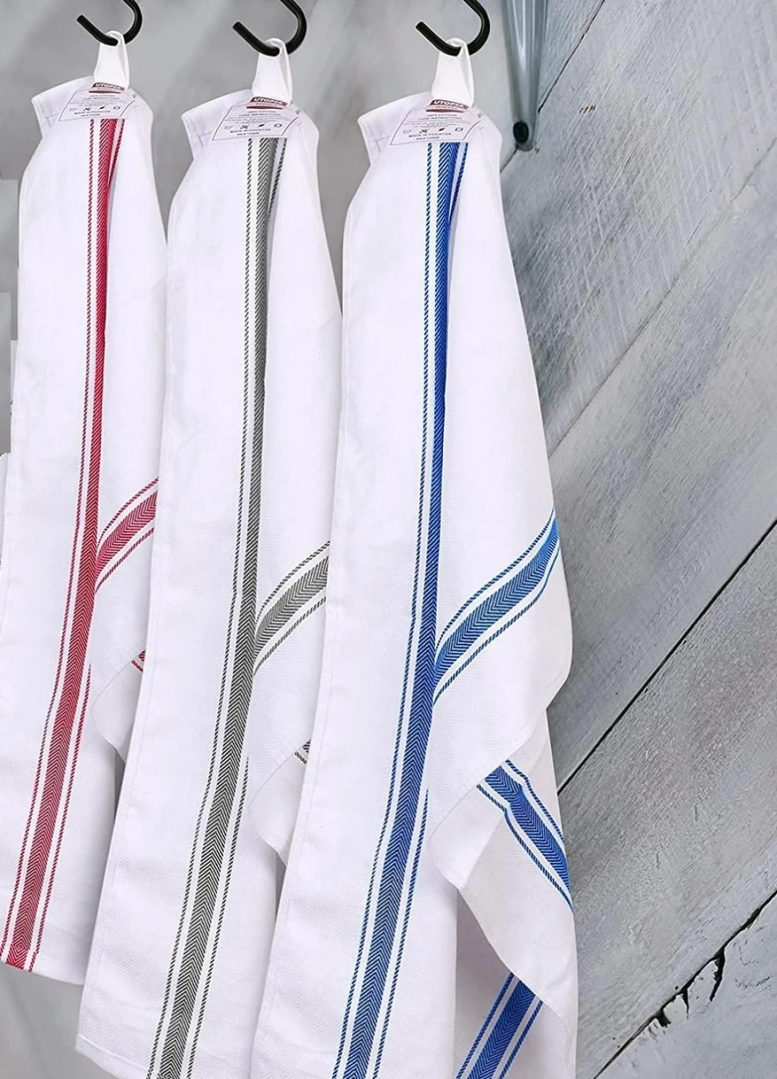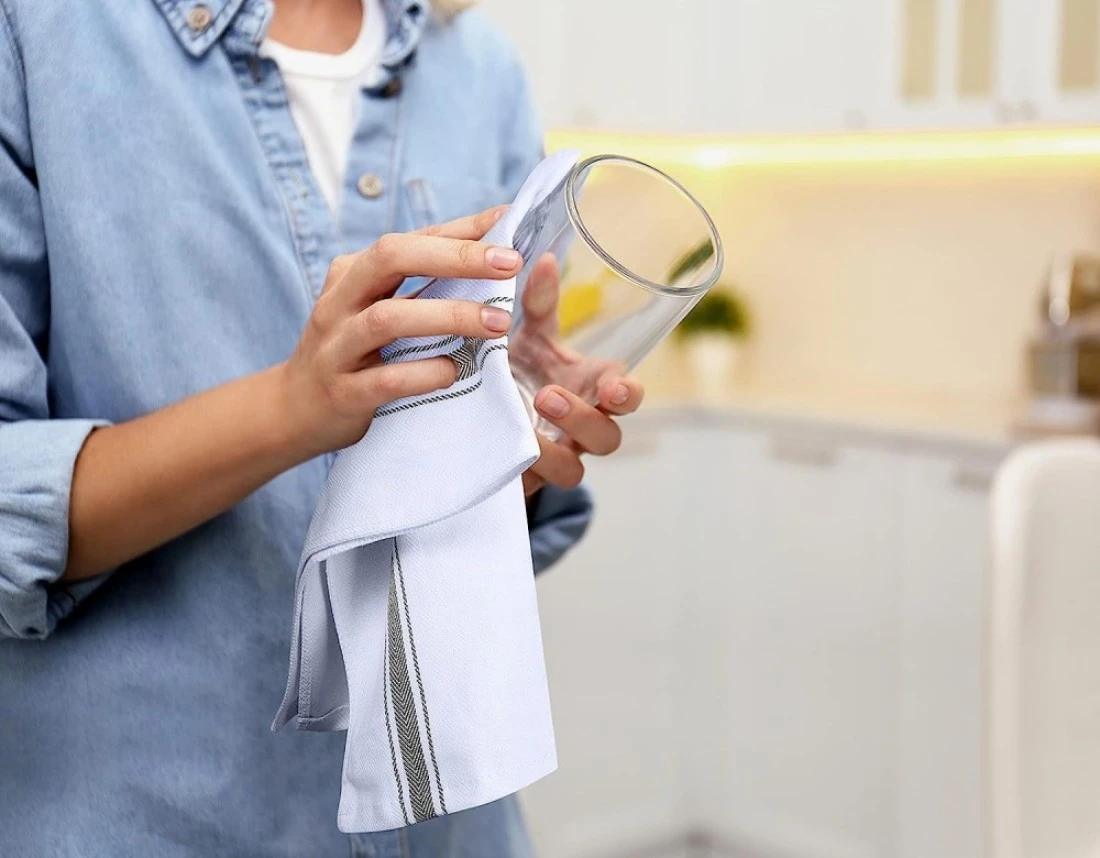 ✅ STRONG AND LONG-LASTING MATERIAL- Made from 100% ring spun cotton, the dish towels are durable and firm enough to withstand repeated uses and washings. The towels have a side stripe design that makes them look decent and elegant.