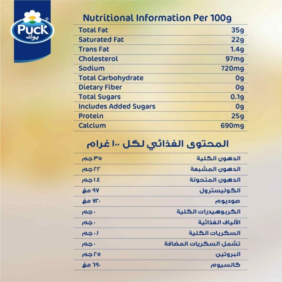 ingredients : حليب البقر، ملح، خميرة حمض اللاكتيك، المنفحة (الميكروبية)