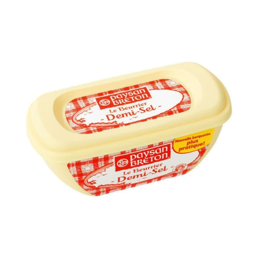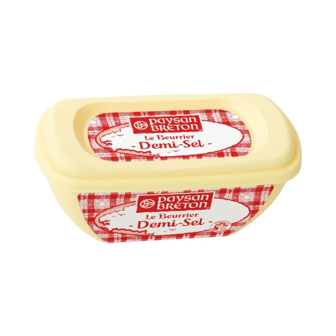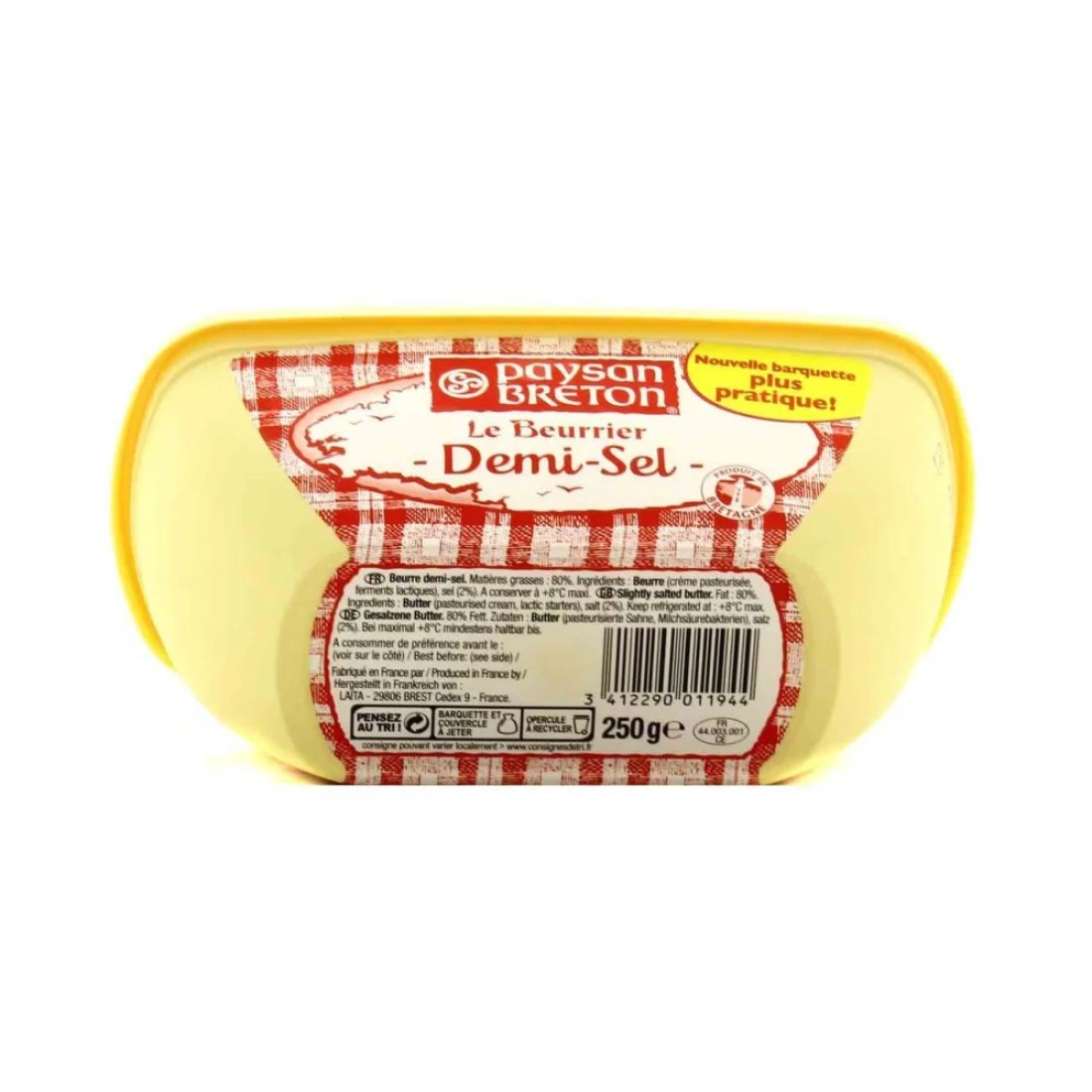 زبدة بايسان بريتون المملحة هي زبدة لذيذة وكريمية مصنوعة من مكونات عالية الجودة.تم صنعها بالطرق الفرنسية التقليدية، مما يعطي إلى نكهة غنية وأصيلة.تعتبر هذه الحزمة التي يبلغ وزنها 250 غرام مثالية للدهن على الخبز المحمص أو الخبز أو الطبخ، مما يضيف لمسة من المتعة إلى أي طبق. تضيف النسخة المملحة لمسة لذيذة رقيقة لتعزيز الطعم. استمتع بطعم بريتاني مع زبدة بايسان بريتون المملحة.