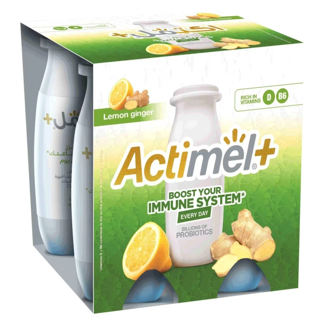 أكتيميل بروبيوتيك ديري مشروب الليمون والزنجبيل 93 ملل حزمة من 4