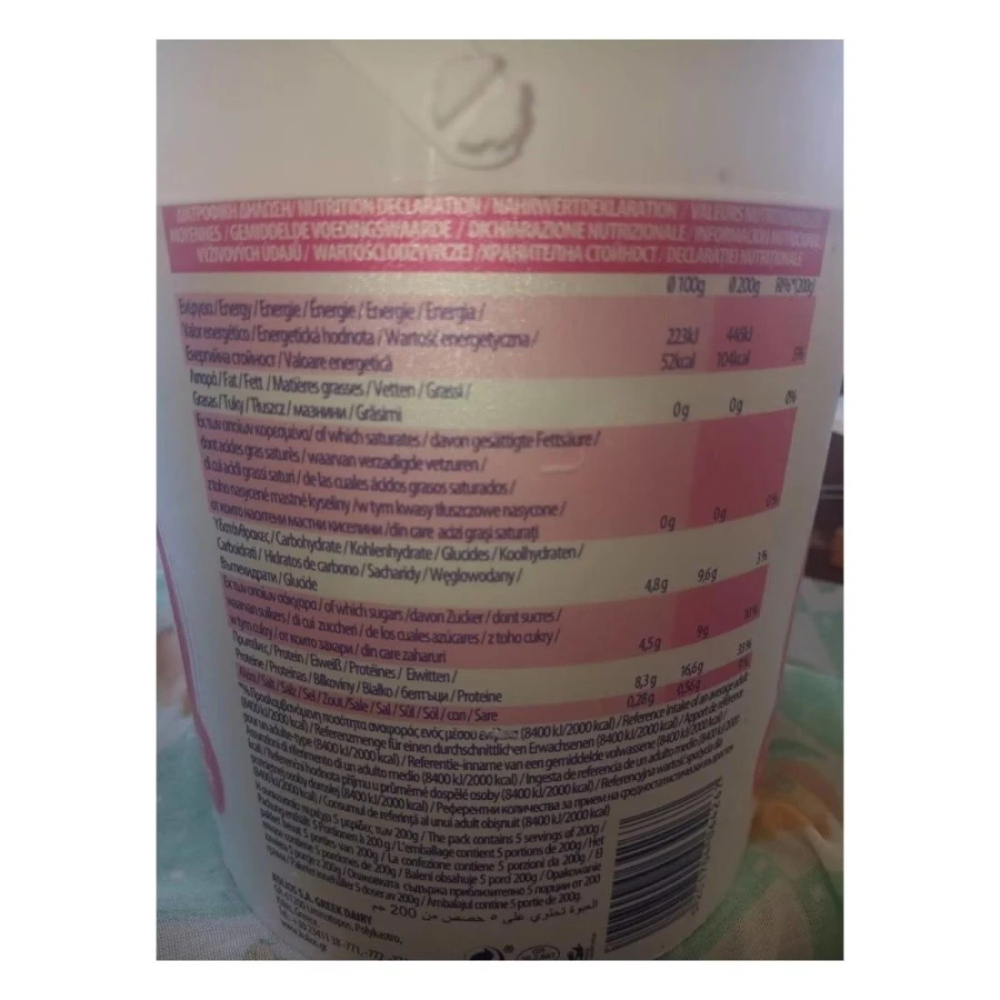 ingredients : حليب بقر منزوع الدسم، حليب بقر مركز منزوع الدسم مبستر، كريمة الحليب، بروتينات الحليب ومستنبت الزبادي