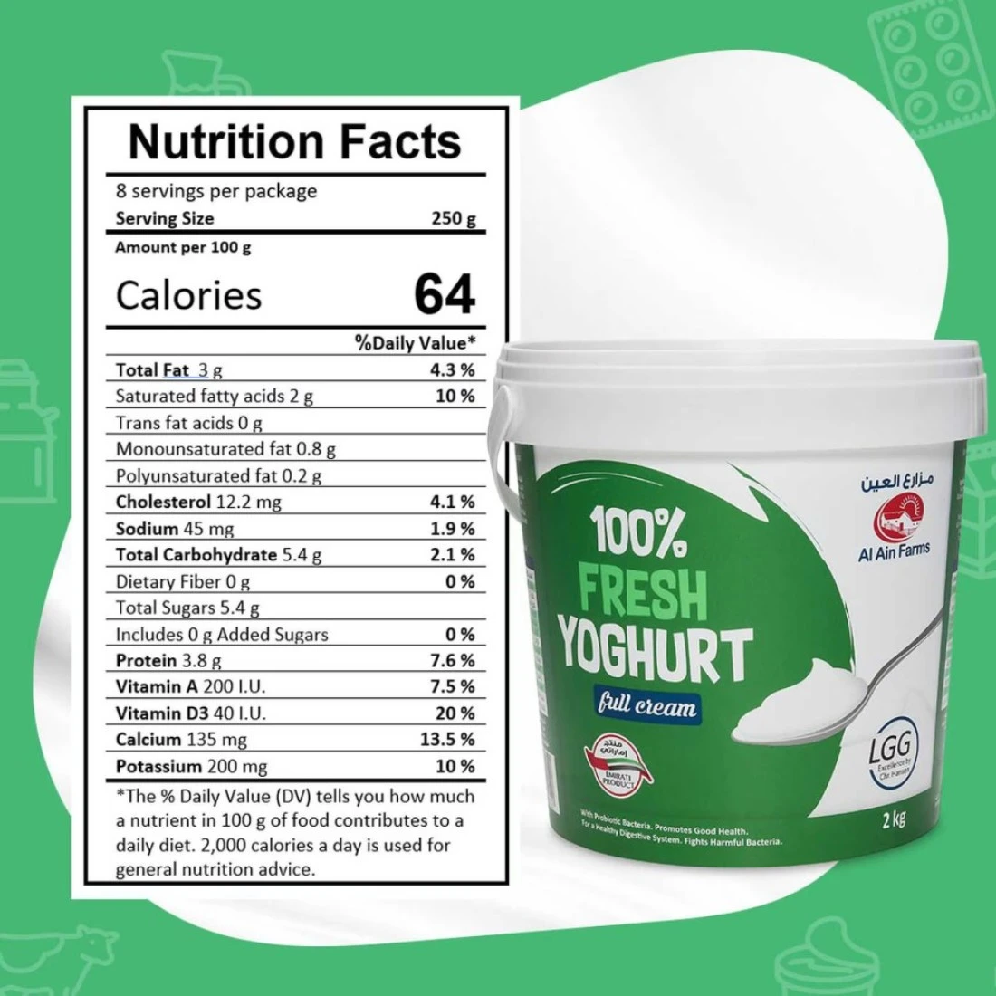 ingredients : حليب أبقار طازج كامل الدسم، جوامد الحليب، زبادي مستنبت حي، مثبتات (E440 ، E471 ، E331) ، فيتامين أي ودي 3
