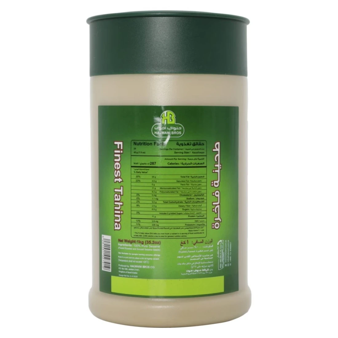 الطحينية من شركة حلواني إخوان النخلة هي عبارة عن معجون سمسم عالي الجودة يستخدم عادة في المأكولات الشرقية الوسطى. مصنوعة من بذور السمسم المحمصة والمطحونة مما يمنحها قوامًا غنيًا وكريميًا. هذه العلبة بسعة 1 كغ مثالية لأولئك الذين يستخدمون الطحينة بشكل متكرر في أطباقهم أو للإستخدام التجاري. يمكن لإستخدامها كقاعدة للصلصات والتتبيلات أو كطبقة علوية للسلطات والخضروات المشوية. يضيف طعمها الذي يشبه المكسرات عمقًا وغنىً لمختلف الوصفات مما يجعلها مكونًا متعدد الإستخدامات وأساسيًا في أي مطبخ.