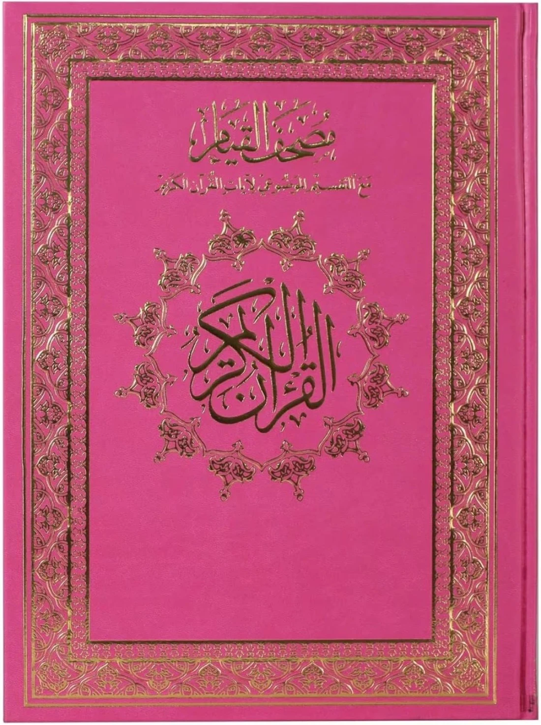 مصحف القيامة بغلاف مخملي - مصحف القيامة مع التقسيم الموضوعي لآيات القرآن الكريم جوامع القيام قرآن كبير الحجم 25×35سم 122 صفحة. (وردي)