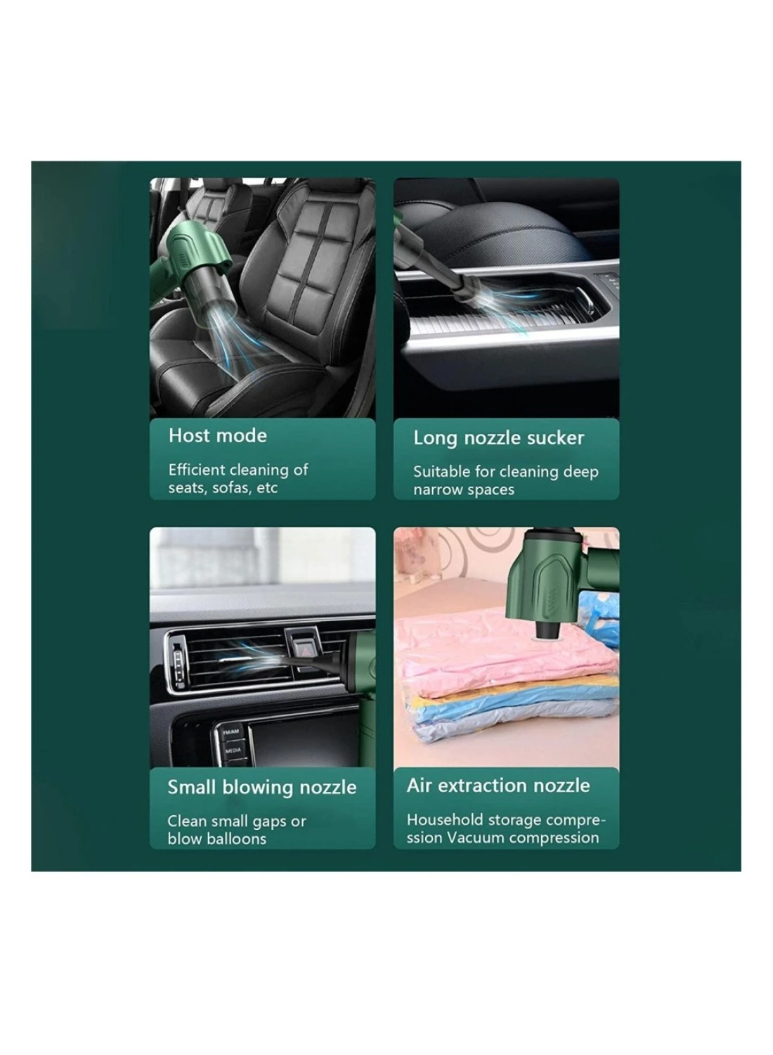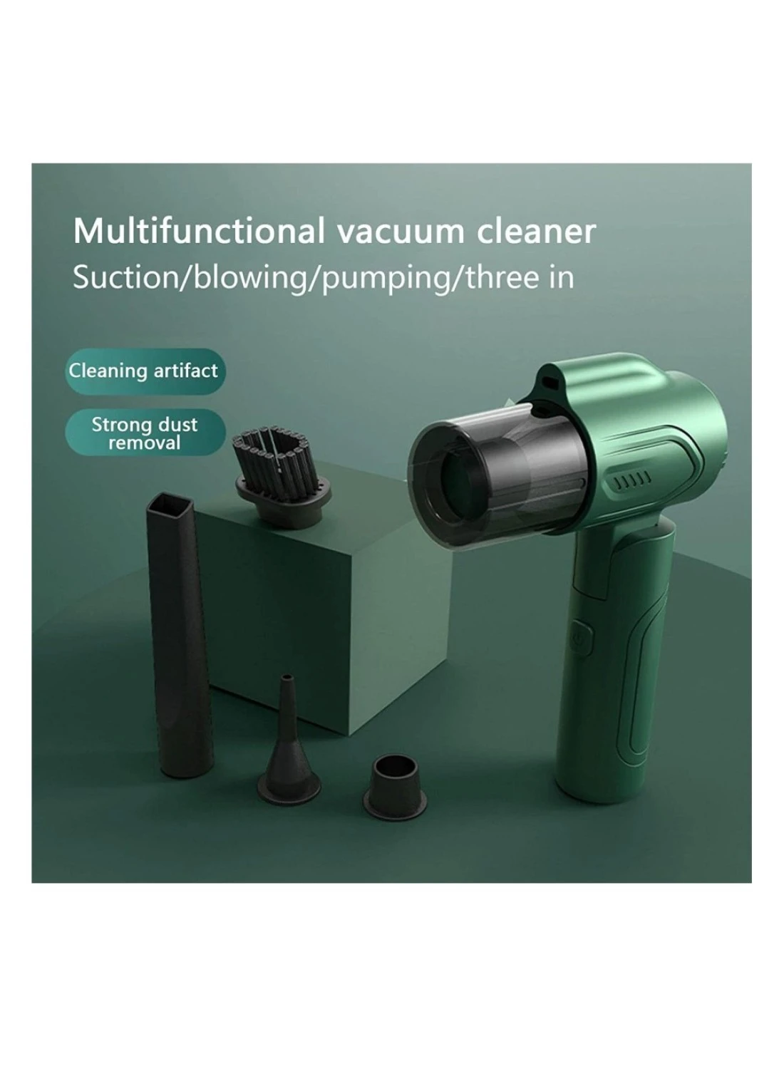 Vacuum Cleaner And Air Duster 3-in-1: advanced 3-in-1 technology of blowing and suction, multi-purpose, inflatable, can be pumped. Integrated blowing and suction, no dead corners to clean blind spots, dual-use car and home, suitable for a variety of scenarios. It is enough to meet your cleaning needs for dust, debris, sand, pet hair and some difficult-to-clean debris in the car or home.