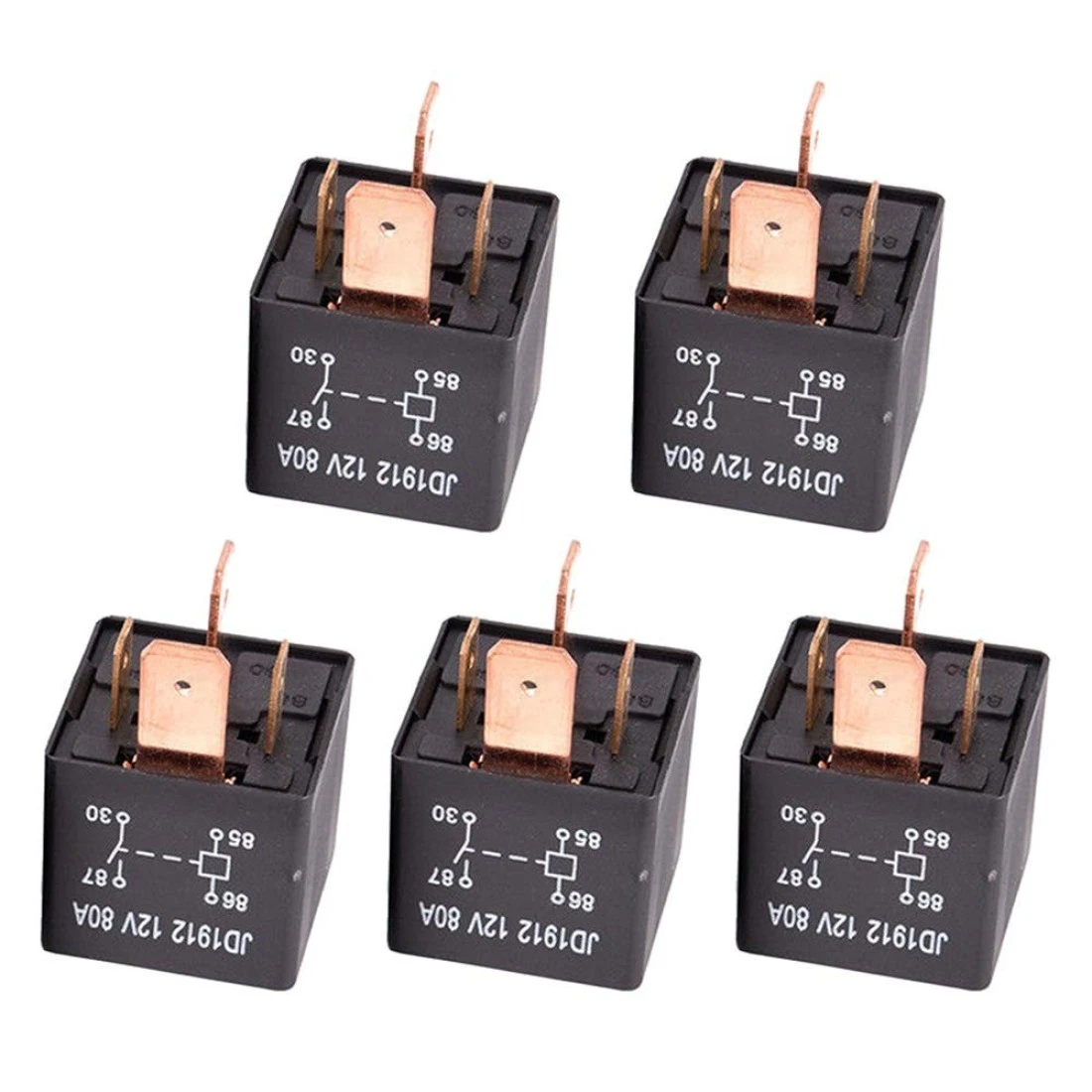 ESUPPORT 5Pack Heavy Duty Car Automotive DC 12V 80A Relay Switch 4Pin SPST Copper 95mm Terminal Kit