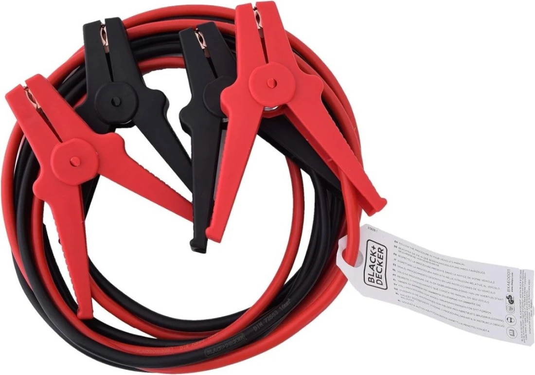 BLACK+DECKER™ Jump Cables are suitable for petrol engines up to 2,5L and Diesel engine up to 1,8L. 3m cable with premium insulated clamp to help prevent short circuits. Can be used with 6v, 12v, or 24v systems.