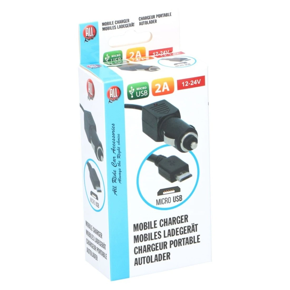 أول رايد شاحن هاتف بمنفذ Micro USB ـ 2 أمبير ، 12-24 فولت - أسود