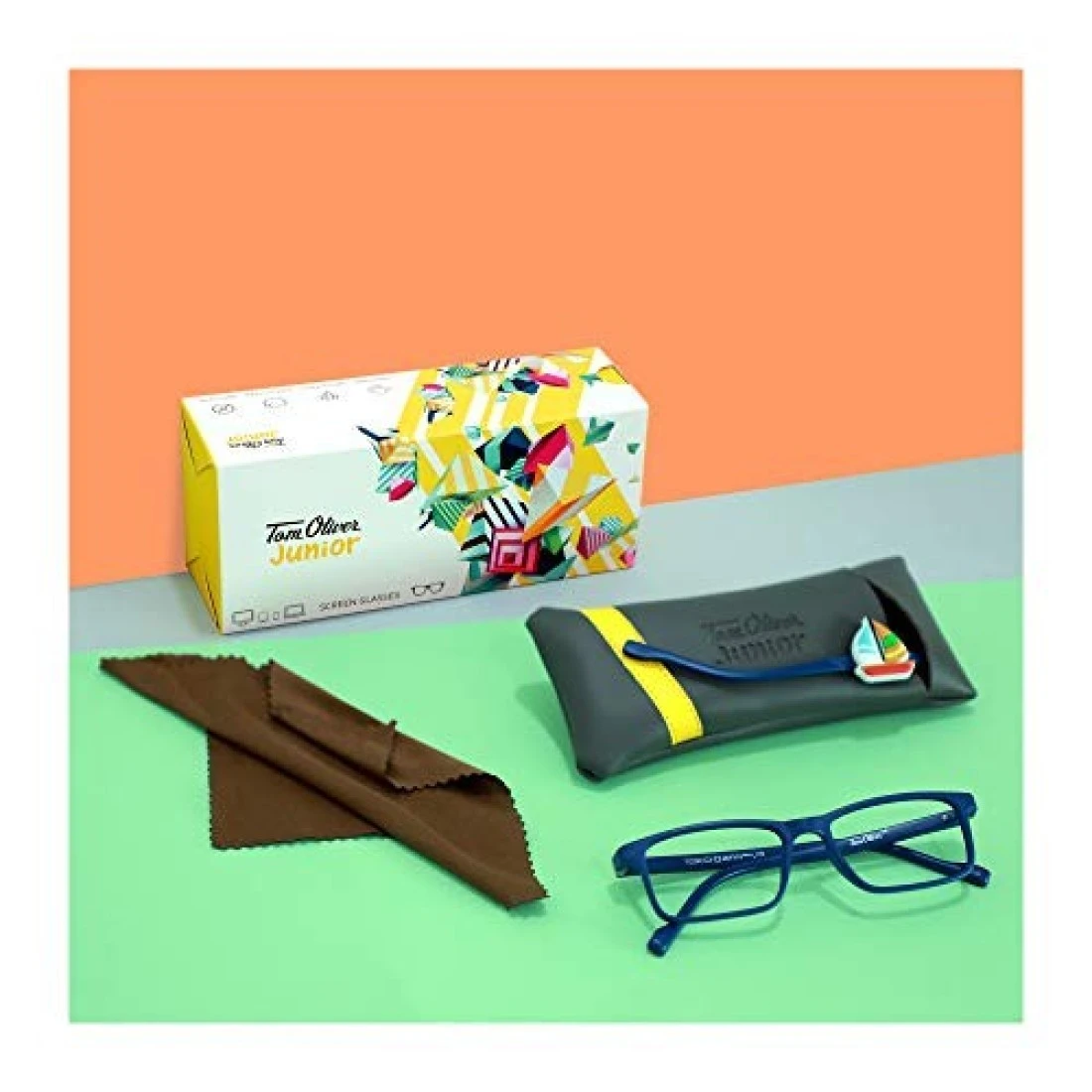 TOM OLIVER JUNIOR Blue Light Blocking Computer Screen Glasses - Anti Blue Light, Protection Eyewear for Children from Digital Screen Time for Boy's & Girl's Age 5 - 12 (Rectangle, Blue)
